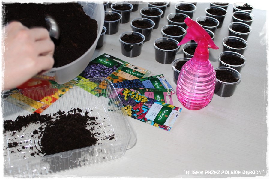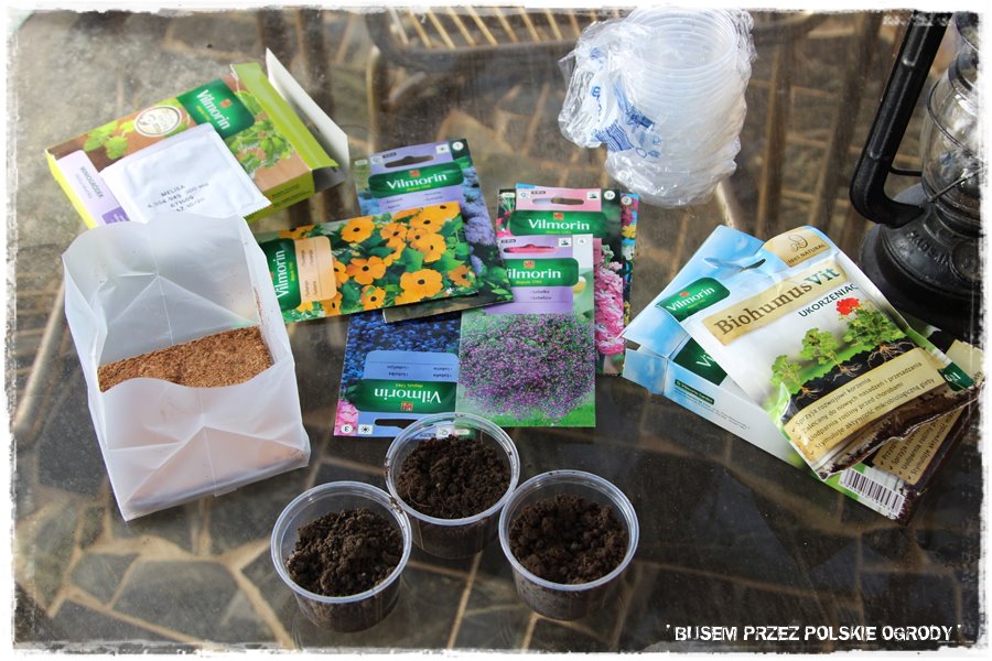 W końcu jakby nie było to już druga połowa lutego, a zatem najwyższy czas na przygotowanie rozsad niektórych warzyw i kwiatów. Oczywiście potrzebne są do tego pojemniki, ziemia i nasiona, które na szczęście ze mną przyjechały. Wykonanie rozsad zaczęło się na tarasie Joanny,