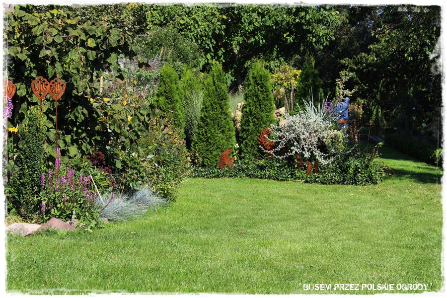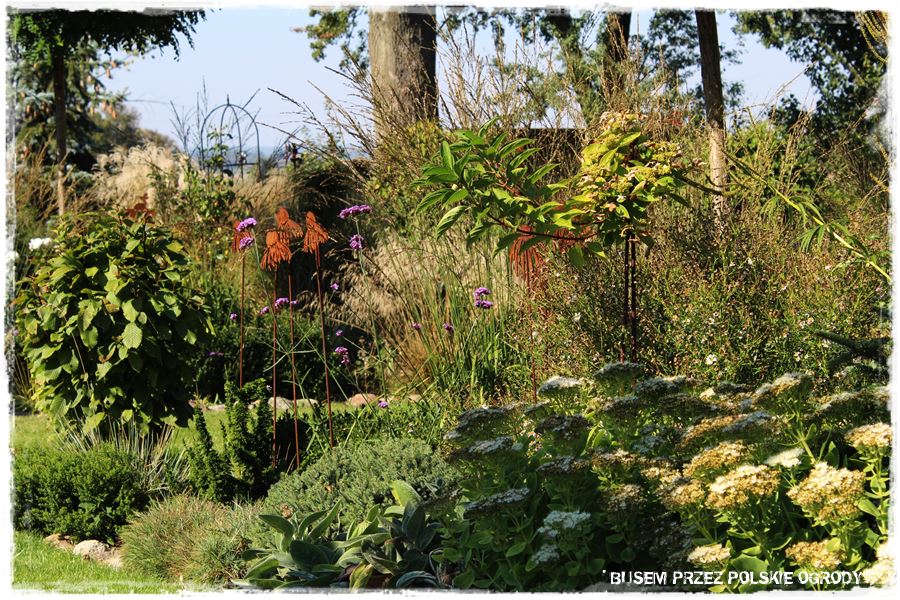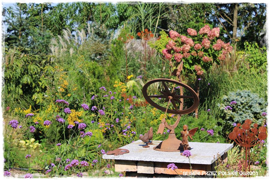 Jednak mimo tego, nie to jest głównym wyróżnikiem tego ogrodu. Ale są nim przepiękne metalowe ozdoby, naturalnie pokryte rdzą, które są pomysłem i dziełem rąk Właściciela ogrodu.
