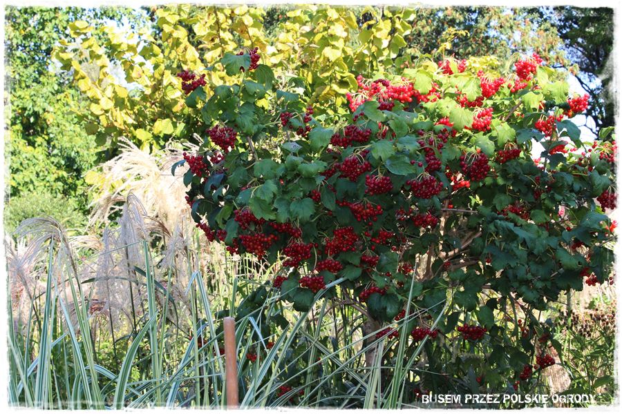 Warto zwrócić uwagę na jedną z kompozycji, w której biały pióropusz właśnie traw, pięknie komponuje się z czerwonymi owocami kaliny.