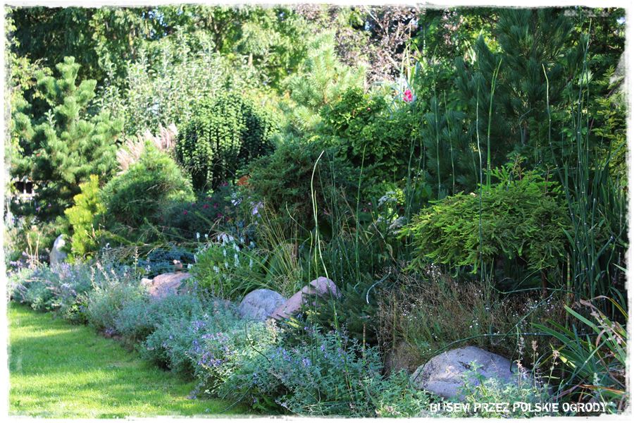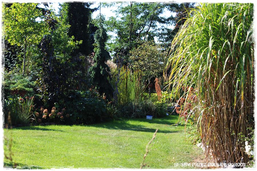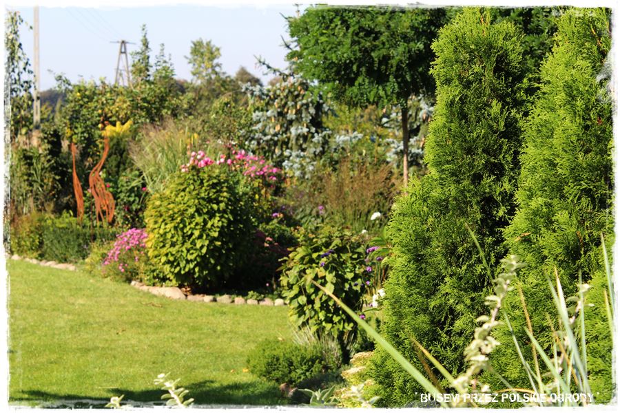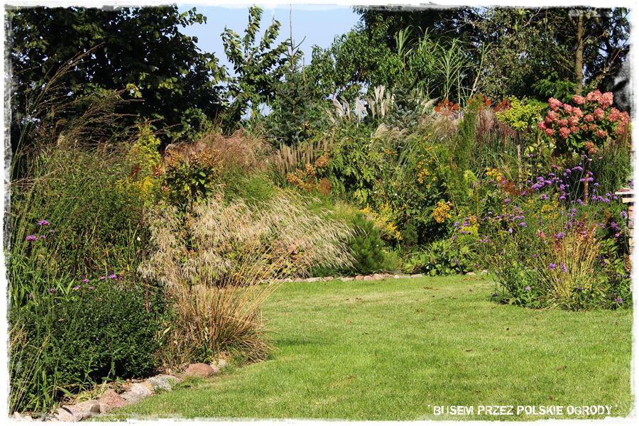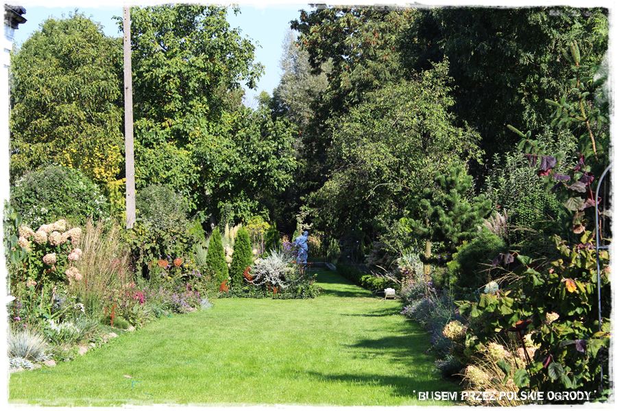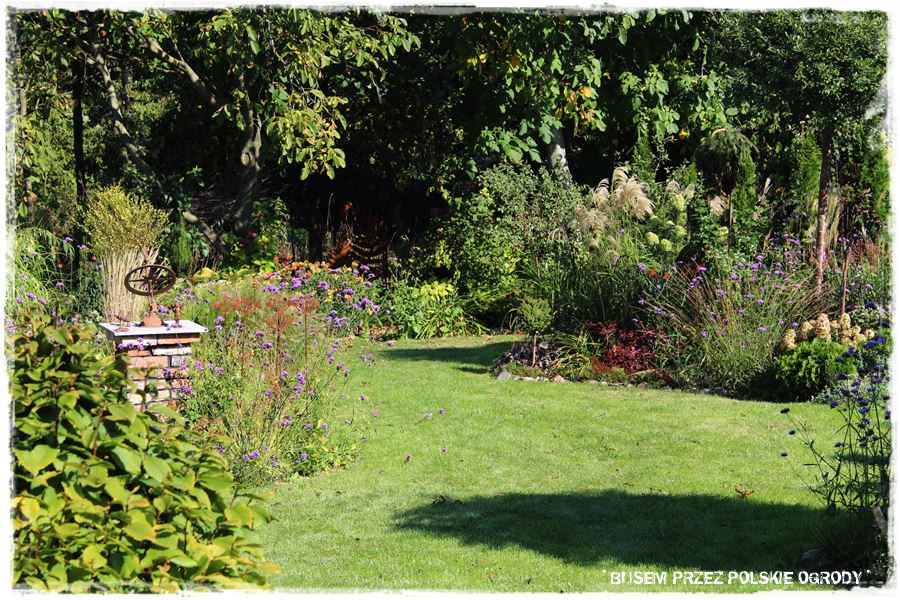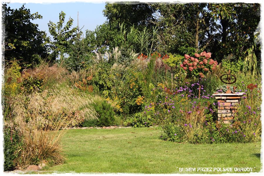 Ogród jest duży, w obecnym kształcie i zagospodarowaniu zajmuje powierzchnię przeszło pół hektara. A już są plany rozbudowy i Przemek rozpoczął obsadzanie kolejnych obszarów, patrząc tak wizualnie, pewnie kolejnych kilkudziesięciu arów. I właśnie to jest metoda, jaką ten ogród powstawał i w dalszym ciągu się rozbudowuje. Nie powstał od razu, ale kawałek po kawału, zajmując coraz to kolejne obszary i tworząc kolejne, nowe zakątki. Stąd właśnie jest tak zróżnicowany, a każda jego część jest inna. Jednak łączy je zupełnie swobodny układ, wijące się rabaty, a przede wszystkim gęste i zróżnicowane nasadzenia.
