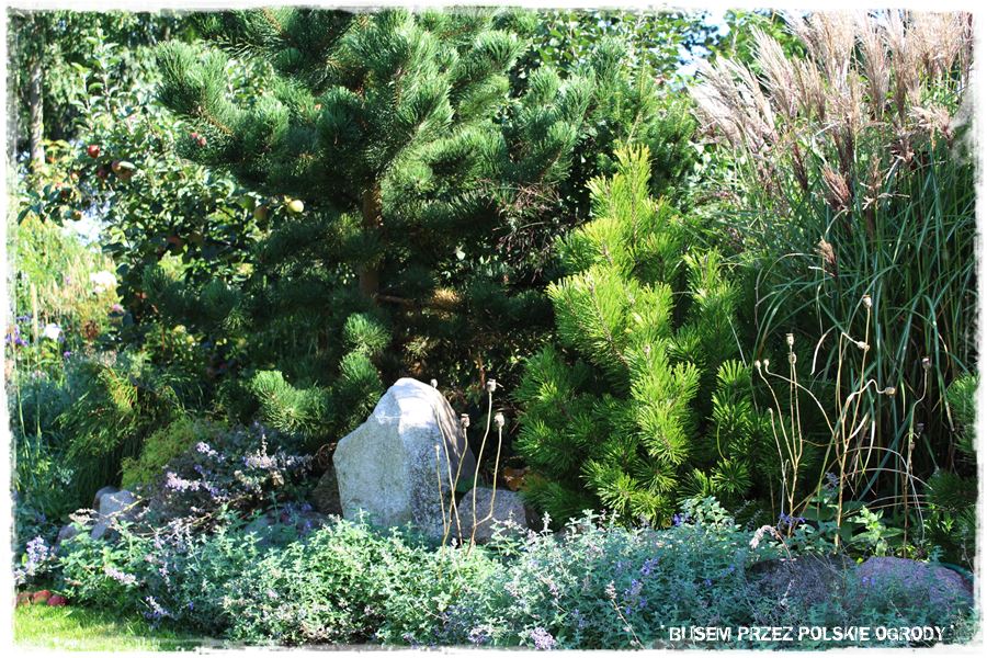 Z kolei przy samym zbiorniku jest jeszcze pięknie wkomponowana w to trawa pampasowa, dobrze uzupełniająca całą kompozycję.