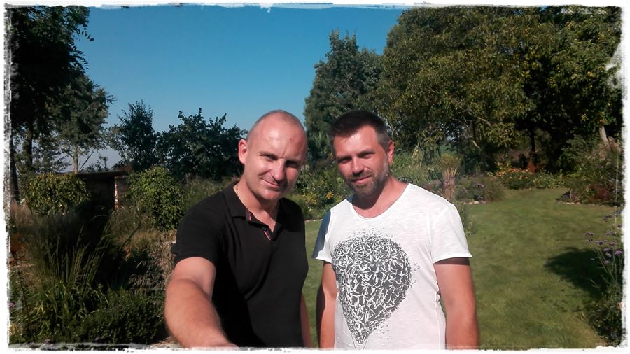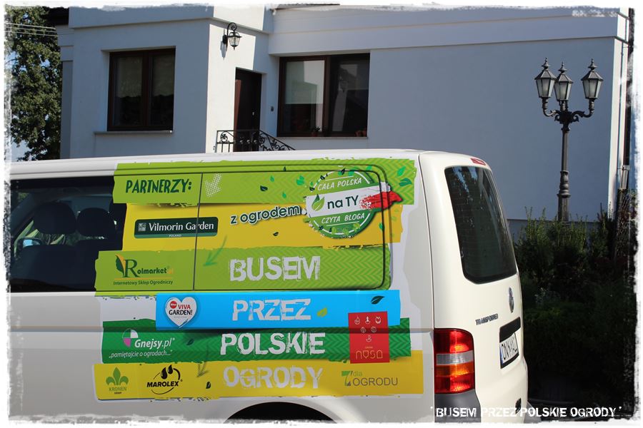 Wracając do wizyty, jak zawsze, bus zaparkował w ogrodzie, a ja miałem możliwość przywitać się i poznać z przemiłym Właścicielem ogrodu – Przemkiem oraz jego niezwykle miłą Mamą. Jeśli czytasz uważnie wszystkie relacje, zauważyłeś pewnie, że to pewnego rodzaju schemat, który staram się powielać. Z drugiej strony trudno sobie wyobrazić, aby ten charakterystyczny bus do ogrodu nie wjechał, a jak nie przywitał się z Gospodarzami. Tym bardziej, że mam szczęście trafiać na wyjątkowo miłe, otwarte i gościnne osoby, co miało miejsce również w tym przypadku.