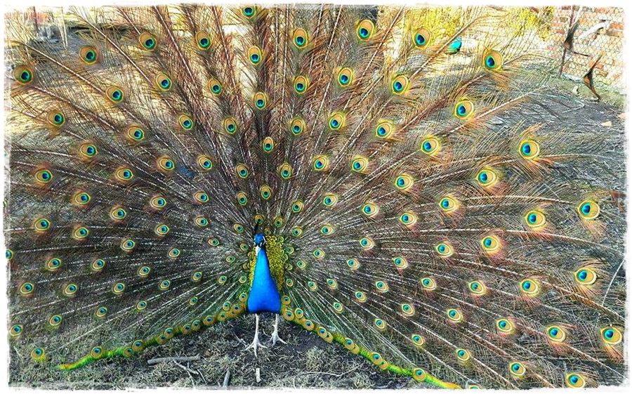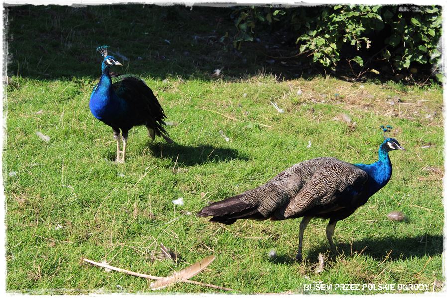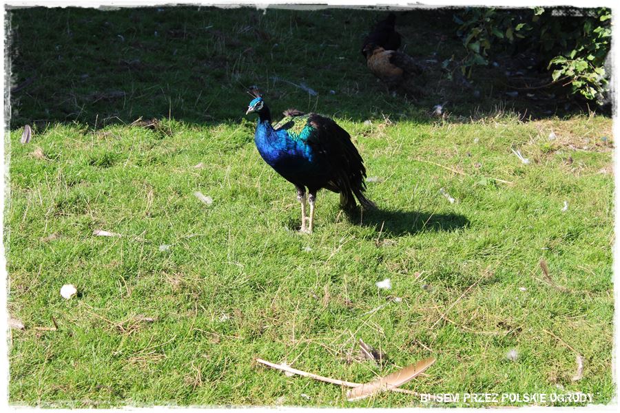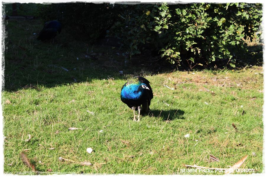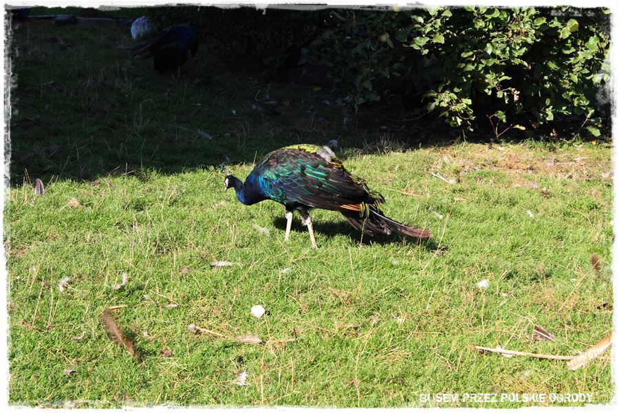 Kończąc omawianie ciekawych zakątków i elementów tego ogrodu, tym bardziej, że przed nami jeszcze najważniejsze – ozdoby, muszę wspomnieć jeszcze o wolno spacerujących tu pawiach. Najprawdziwszych ptakach, które w liczbie kilkunastu sztuk, wolno spacerują po ogrodzie. Wierz mi, że mimo iż w tym okresie zrzuciły już swoje słynne ogony, robi to niesamowite wrażenie.