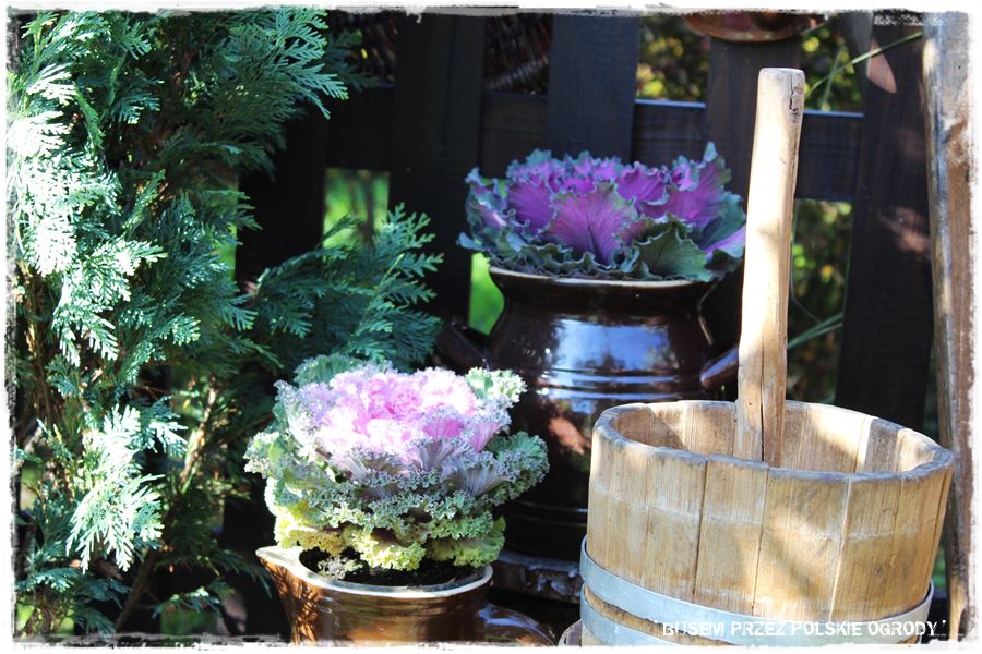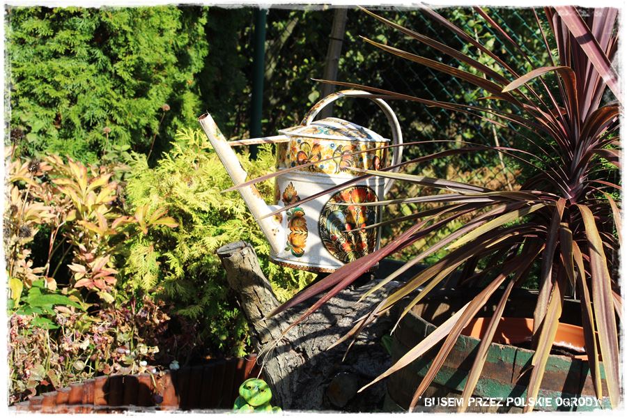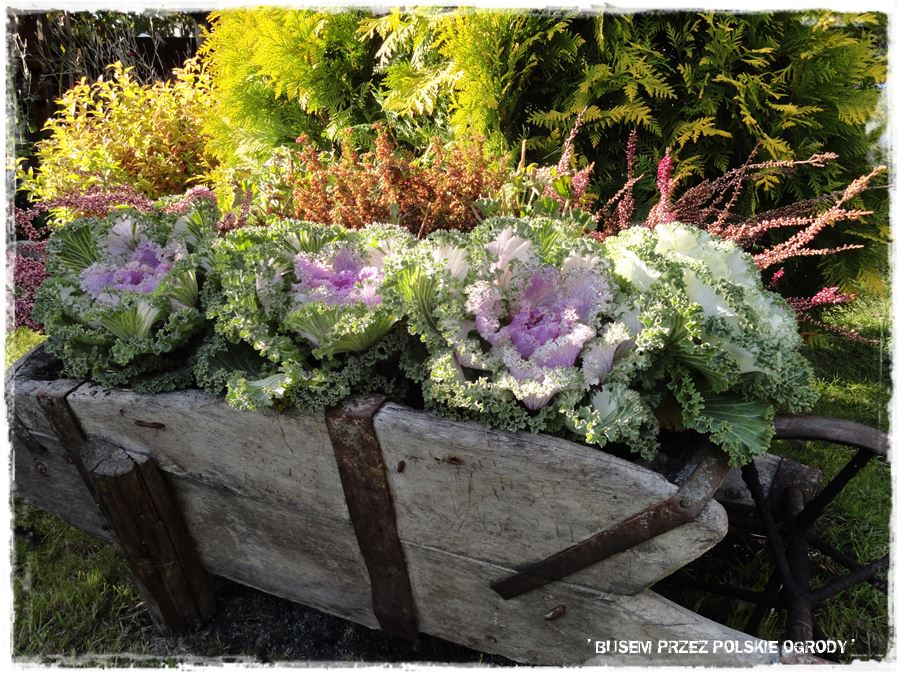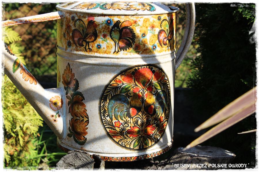 Wkomponowanie z takim kunsztem tych z pozoru rupieci. staroci w tej ogród, bardzo dużo mu dało. Co rusz czeka jakaś fajna niespodzianka, a to stareńka taczka z kapustą czy brateczkami, to maselniczka do bicia masła, doniczka czy wiele innych które tak fantastycznie tam wyglądają. Mnóstwo soczystej zieleni, a przy tym łagodnie wkomponowane przepiękne kolory w postaci kwiatów, bajka. Chapeau bas!