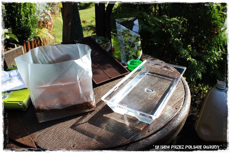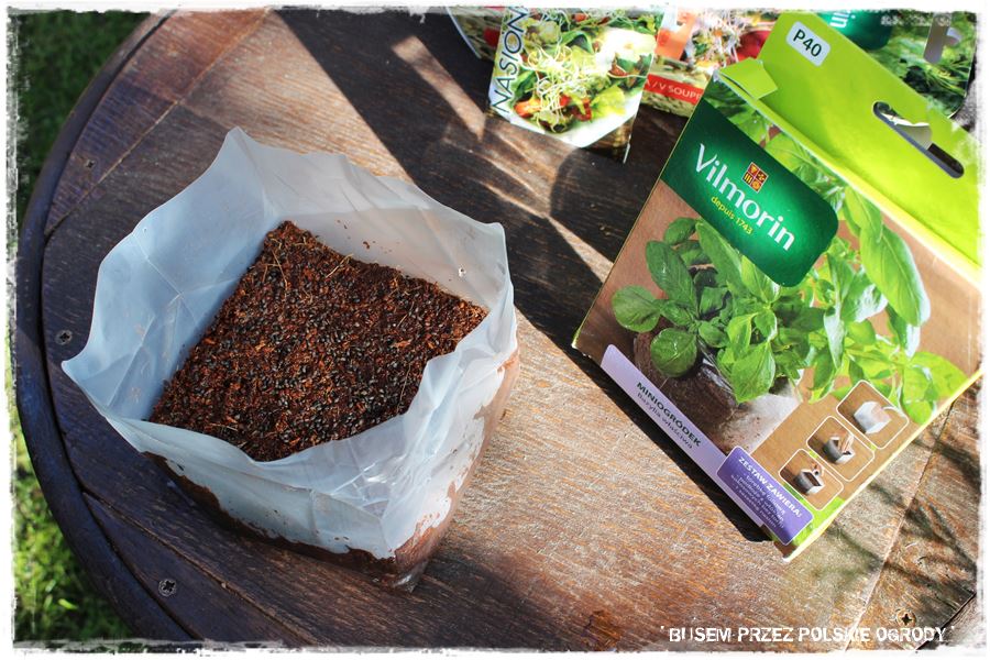 Następnie, ponieważ to już jesień, postanowiliśmy otworzyć sezon upraw w gotowych pojemnikach. Stąd wysialiśmy kiełki w tzw. minikiełkowniku oraz bazylię, ale tym razem w specjalnym pojemniczku z gotowym podłożem kokosowym. Swoją drogą to idealne rozwiązania do domowej uprawy.