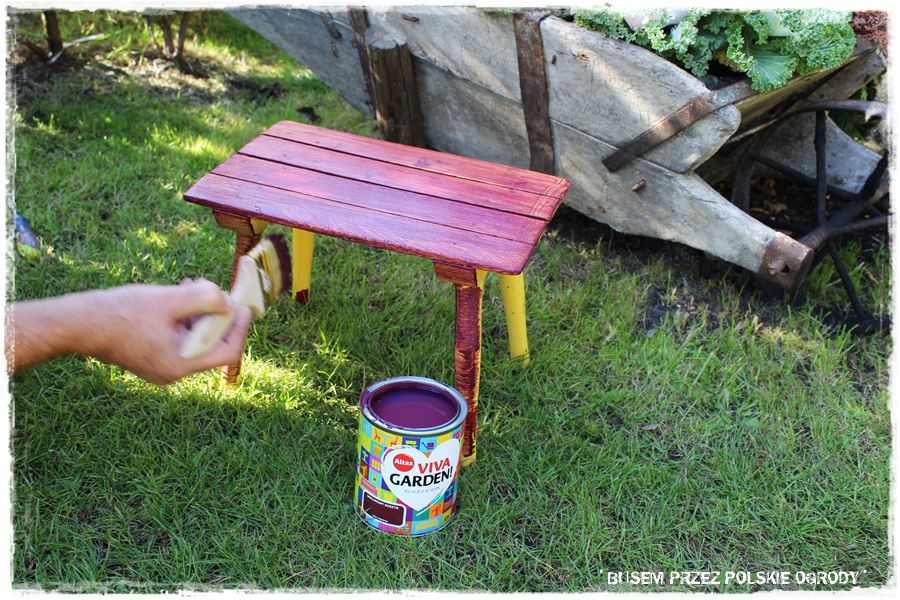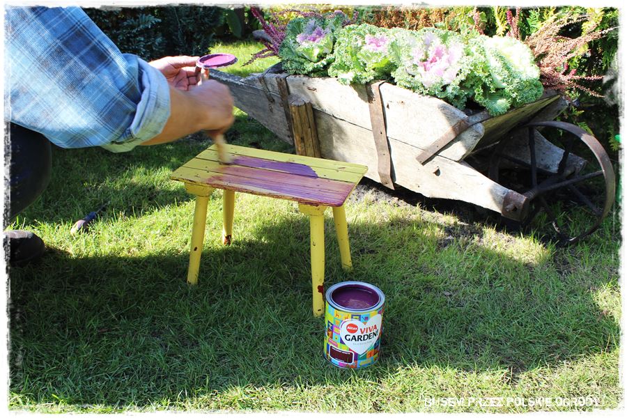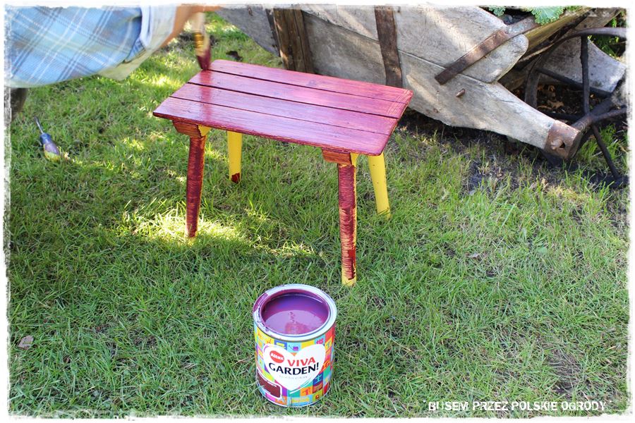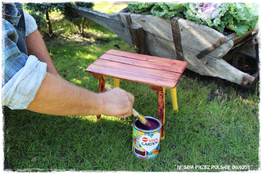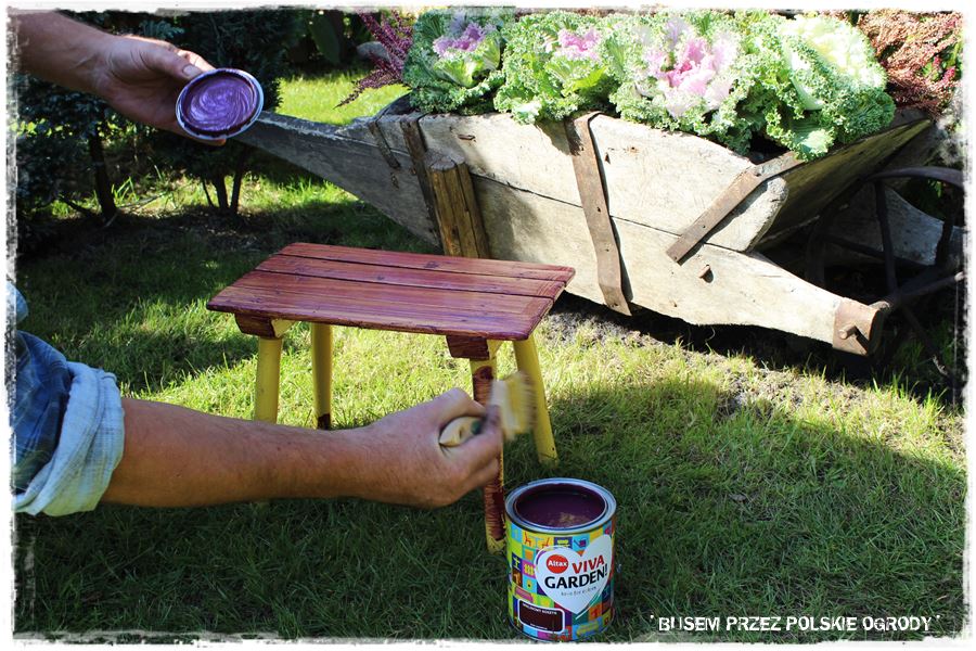 Z kolei z prac mniej ogrodniczych, ale jak najbardziej ogrodowych, udało się nam zrobić dwie rzeczy. Pierwsza, to tradycyjne malowanie, tym razem ogrodowego stołeczka, który zyskał oryginalny kolor – lawendowe wzgórze.