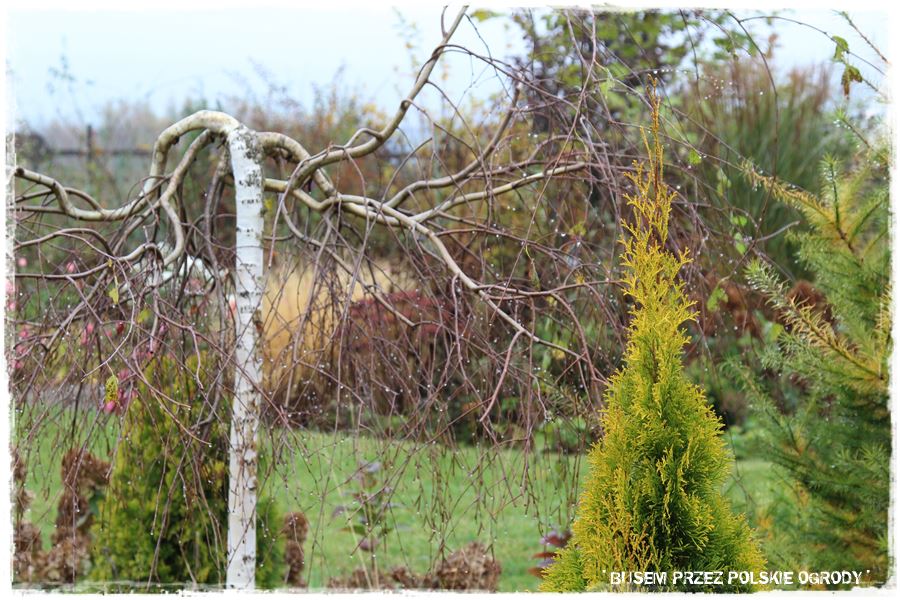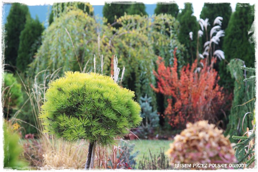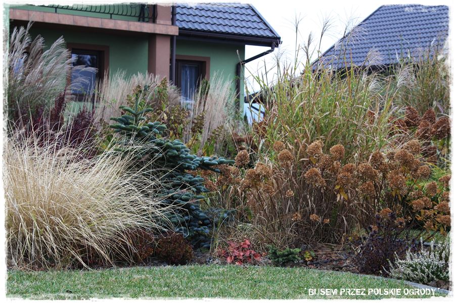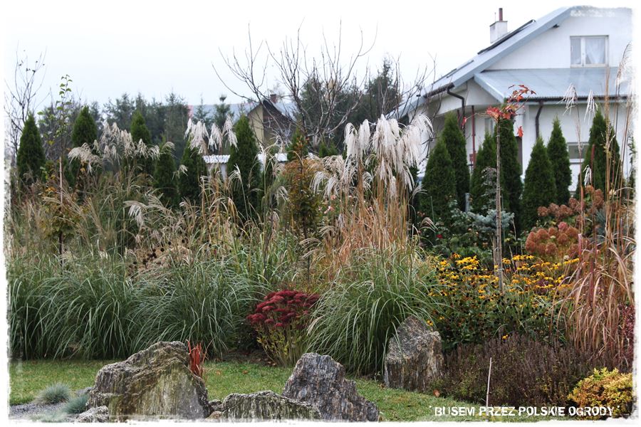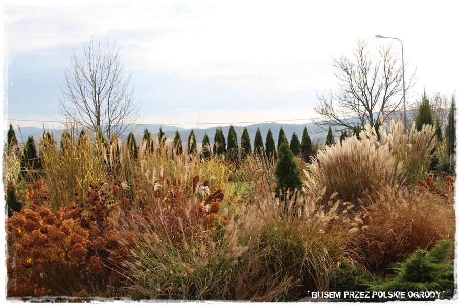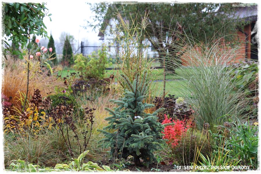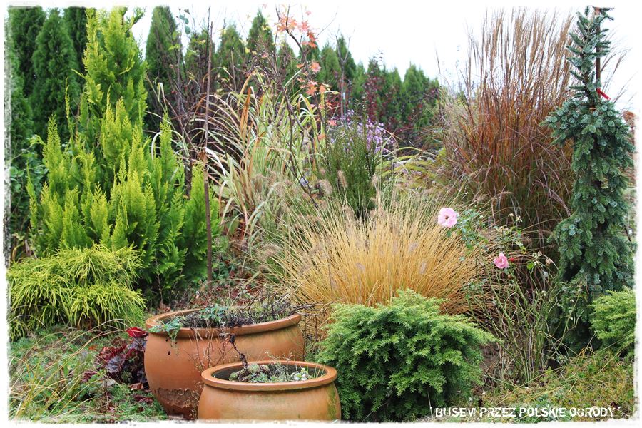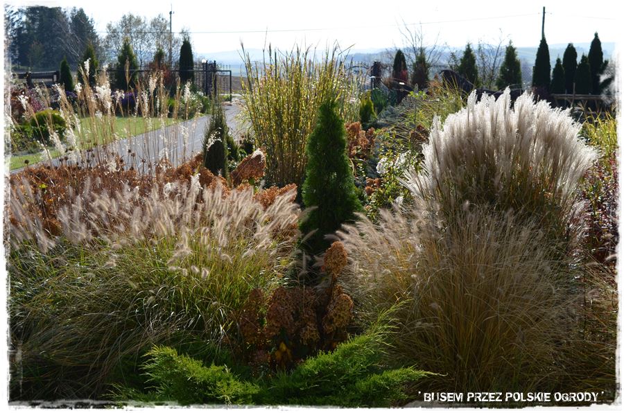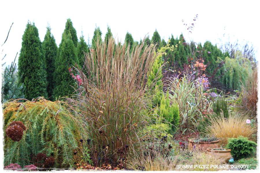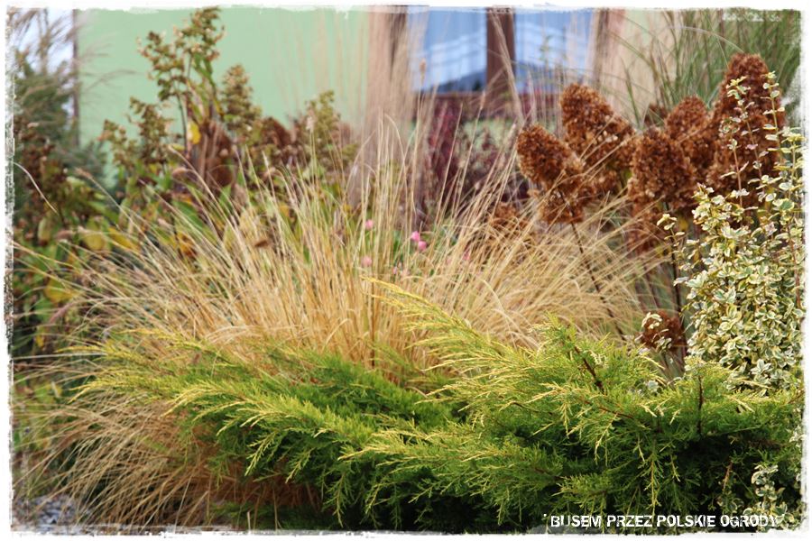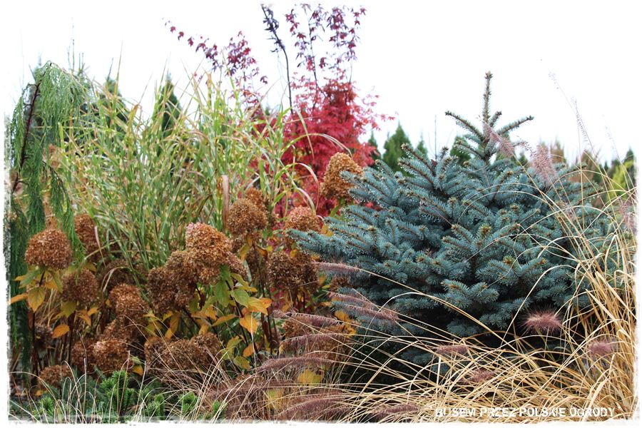 - a drugim sukcesem, a właściwie już kolejnym w tym ogrodzie, jest niezwykły dobór roślin pod względem kolorystycznym. I chyba jesienią widoczne jest to najbardziej, gdzie wiele przekwitających odmian zmienia się w odcienie brązu, a przebarwiające się liście idealnie kontrastują z zieleniami i żółciami roślin iglastych.