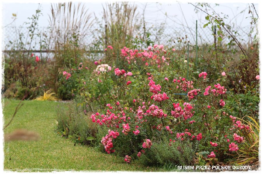 Z kolei strefa za budynkiem, pomiędzy nim, a tylnym wygrodzonym wybiegiem dla koni oraz częściowo z boku budynku, to ogród, który można nazwać „w trakcie dorastania“. Co prawda kształt rabat jest już nadany, są równie swobodne jak te w części frontowej, ale jednak wyraźnie widać, że Maria nie powiedziała tam jeszcze ostatniego słowa. Nasadzenia są już oczywiście zrobione, jednak nie są jeszcze tak rozrośnięte jak te z przodu. Cały czas coś tam jeszcze dochodzi, coś się dosadza, przesadza, a zatem tą część nazwałem roboczo „w trakcie tworzenia“.