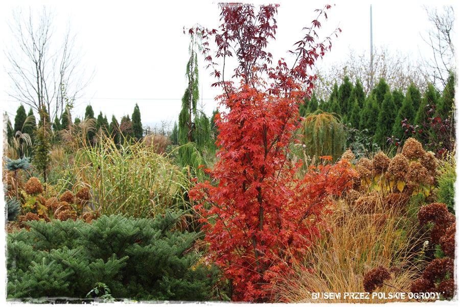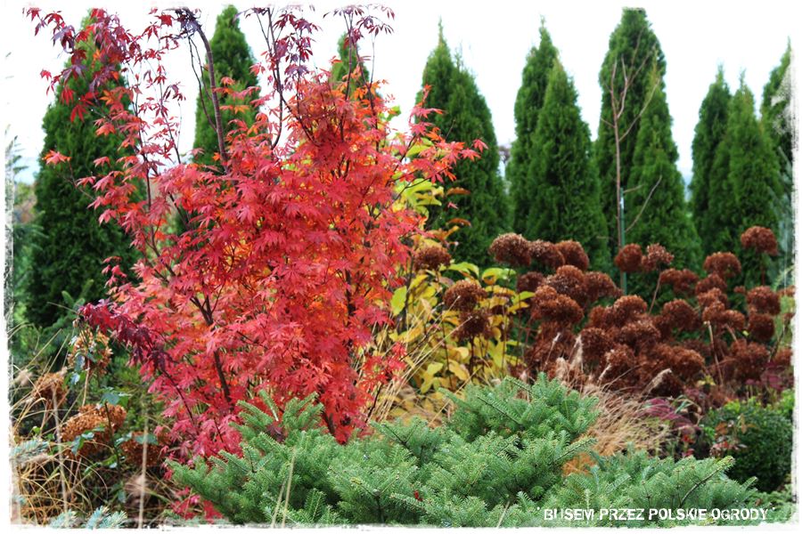 - klony, które ze względu na swoje jesienne przebarwienie, wyjątkowo ozdabiają i prezentują się na rabatach,