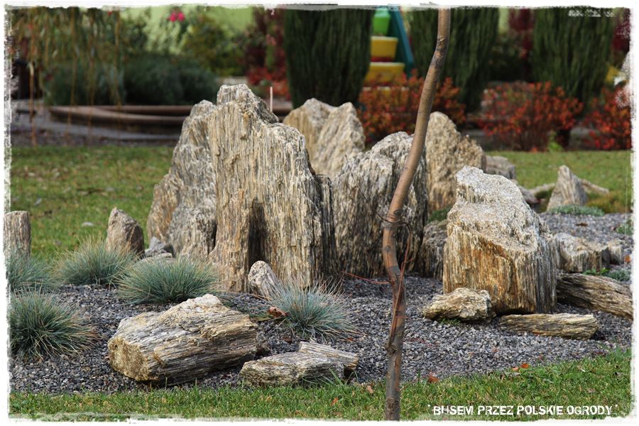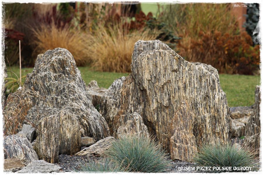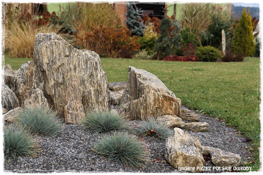 - Warto ogrody ozdabiać. Do roślin dodawać inne elementy, ciekawie je komponując, sprawiając jednocześnie, że całość jest ciekawsza w odbiorze. Tak jak w tym ogrodzie gdzie prawdziwą „wisienką na torcie” są kamienie gnejsowe, będące jedyną w swego rodzaju ozdobą,