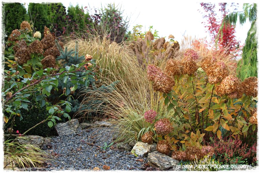 Jesienna poezja ogrodowa widziana pięknymi zdjęciami…cudna ta jesienna odsłona tego ogrodu, przedstawienie jakie oferują trawy czy hortensje zachwyca bez reszty, fenomenalny spektakl przyrody z udzielam człowieka. Gratulacje dla właścicieli za prowadzenie tak schludnego i zadbanego ogrodu, jestem pewna, że o każdej porze roku jest tam równie pięknie!