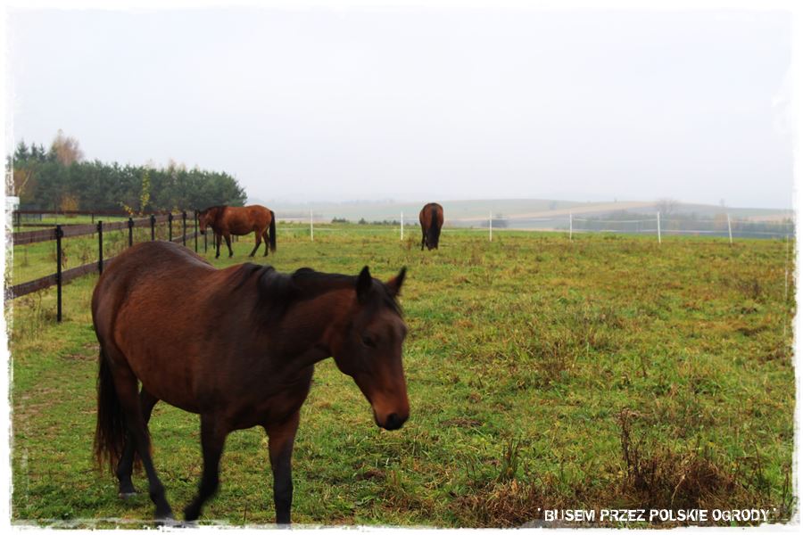 aż po te wielkogabarytowe jak konie, które już w ogrodach są rzadkością. W tym są, w specjalnie wydzielonych wybiegach, które jednak sąsiadują z tym ogrodem właściwym. A zatem konie są tu w bezpośrednim sąsiedztwie i stanowią piękne uzupełnienie i niecodzienne tło dla kompozycji roślinnych. Muszę powiedzieć, że byłem pod ich wielkim wrażeniem.