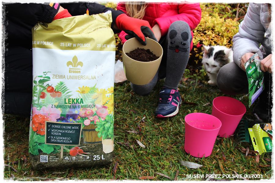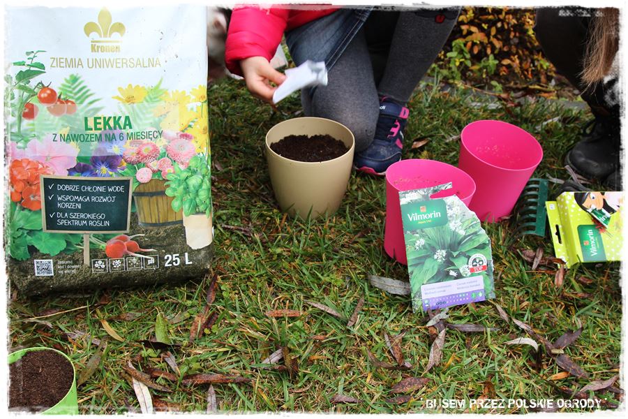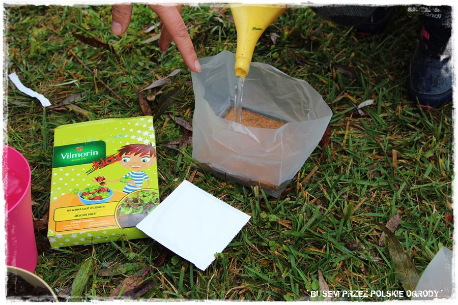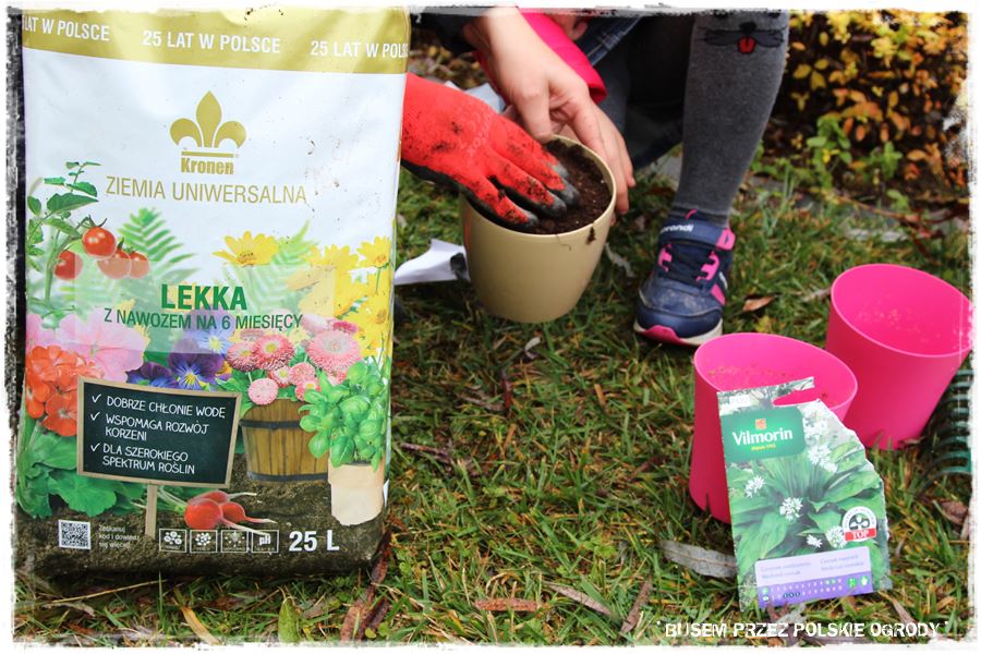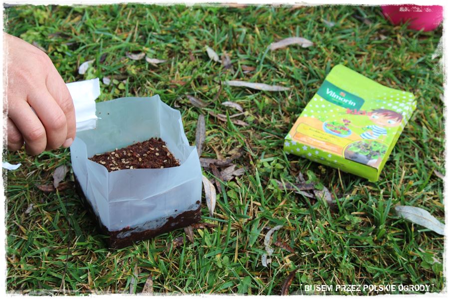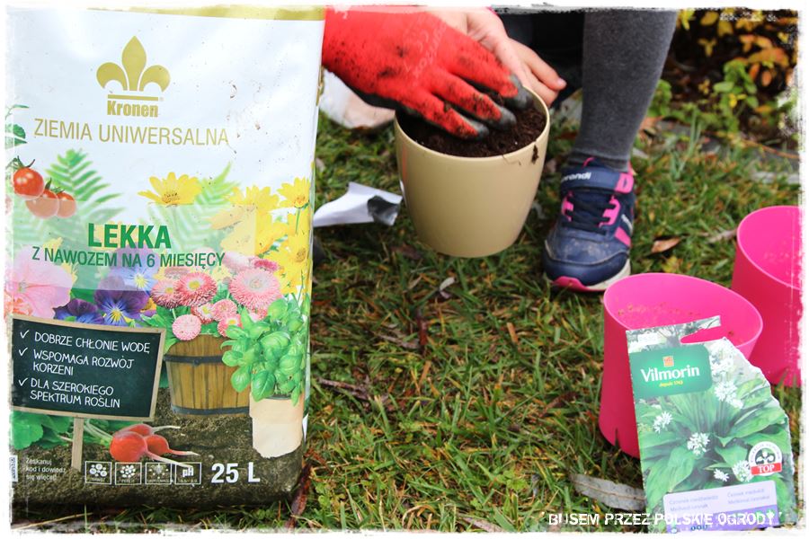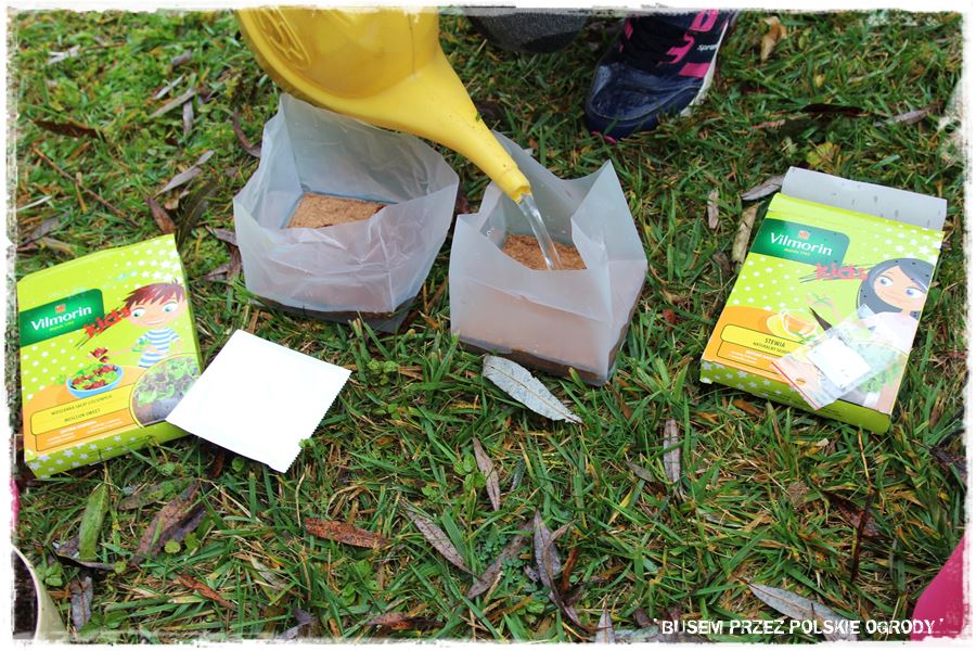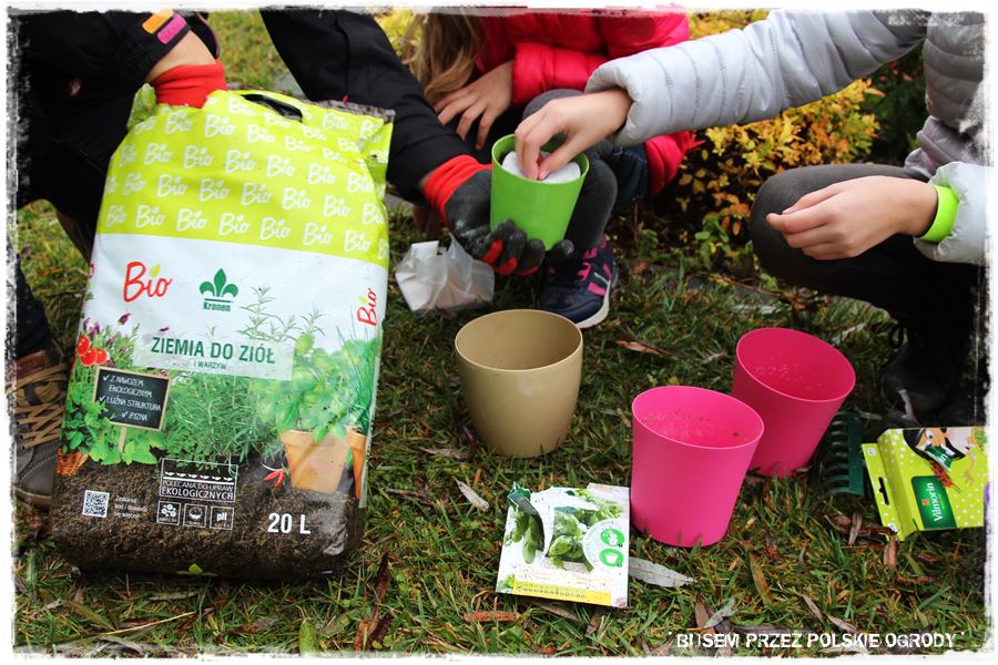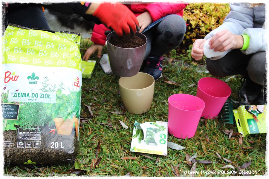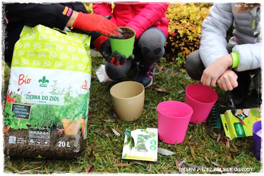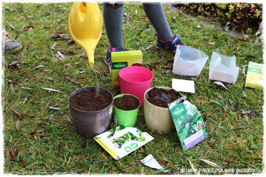 Jak w każdym z odwiedzonych ogrodów, tak i w tym przyszedł czas na wypróbowanie kilku produktów od Partnerów. Tak aby trochę się pobawić, a przy okazji zrobić coś pożytecznego, do tego na świeżym powietrzu i w ogrodzie. Wybraliśmy więc specjalne nasiona czosnku niedźwiedziego oraz nasiona ziół na krążkach, które idealnie nadają się do uprawy w donicy i posialiśmy (umieściliśmy) w specjalnie dedykowanych do tego podłożach. Myślę, że niebawem Maria wraz z rodziną będzie miała z nich pożytek.