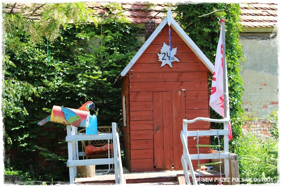 Jak widziałeś na zdjęciach, w ogrodzie tym nie można się nudzić. Na każdym kroku jest coś, co przyciąga nie tylko wzrok, ale jest również atrakcją i zachętą do przebywania w tym miejscu. To niezliczona liczba zakątków, przedmiotów i elementów, które w niezwykle oryginalny sposób są wykorzystywane. Tu jak widziałeś każdy przedmiot jest potrzebny i każdemu można nadać nowy charakter.
