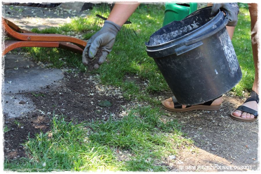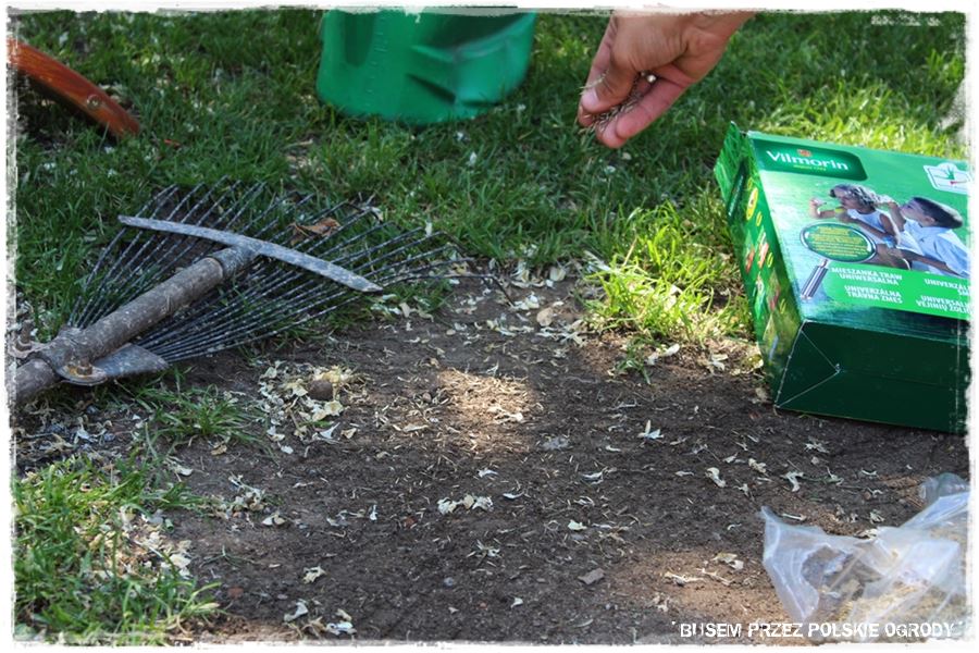 Dosiewka była zresztą jak najbardziej uzasadniona, tym bardziej, że w wielu miejscach przy chodniku, trawnik wymagał odbudowy. Stąd w ruch poszły grabie, ziemia została rozluźniona, nasiona posiane i zasypane. A następnie oczywiście podlane.