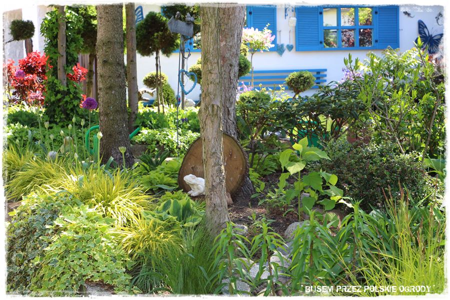 - Warto ogrody ozdabiać. Do roślin dodawać inne elementy, ciekawie je komponując, sprawiając jednocześnie, że całość jest ciekawsza w odbiorze. Tak jak w tym ogrodzie gdzie ciekawie wyglądają np. liczne ozdoby,