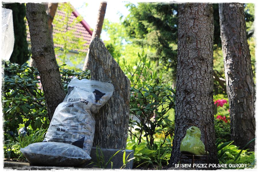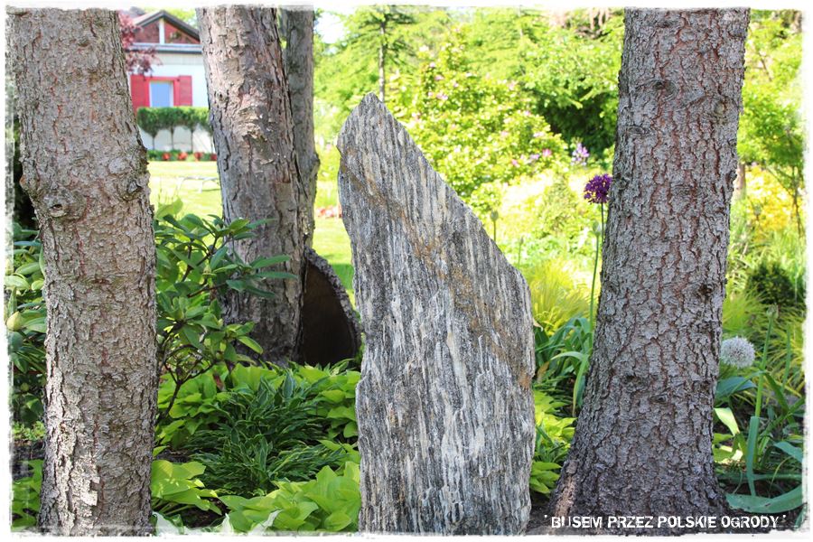 Natomiast na sam koniec ogrodowych zmagań, ustawiliśmy w ogrodzie przywiezioną przeze mnie szpilkę gnejsową, która pięknie wkomponowała się w jedną z rabat.