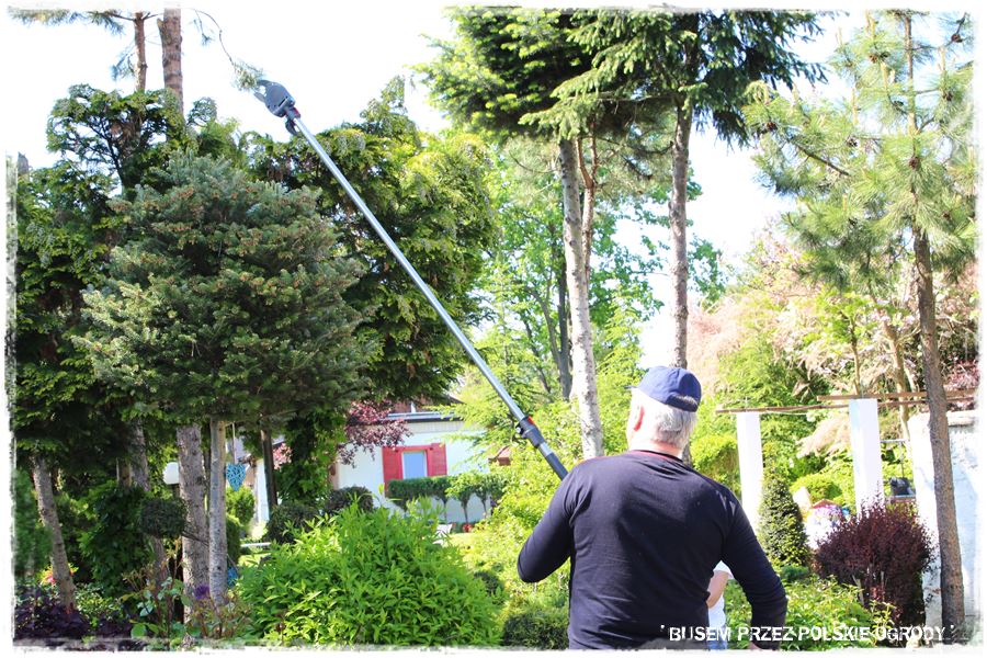 Po pracach związanych z sadzeniem, przyszedł czas na kilka innych spraw gospodarczych oraz pielęgnacyjnych. A zatem w ruch poszły narzędzia i maszyny, co mnie osobiście cieszy najbardziej. Na początek kilka przycinek trudno dostępnych, wysokich gałęzi, do których dobrał się sekator na wysięgniku.