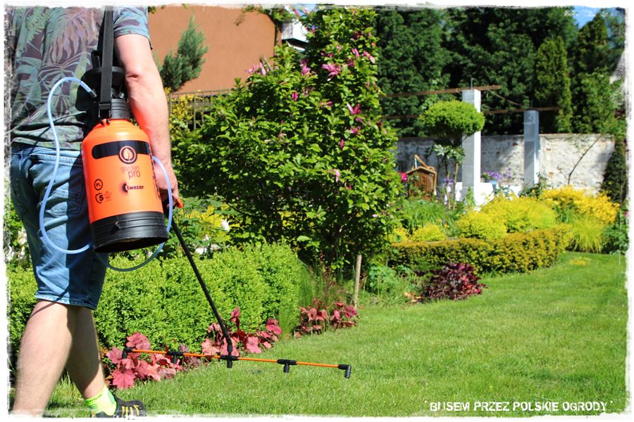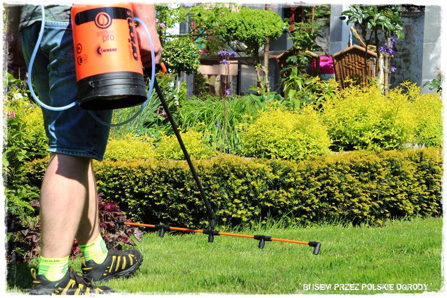 Następnie wiosenny oprysk trawnika przeciw chwastom, ręcznym opryskiwaczem ze specjalnym przyłączem 5-dyszowym. To super praktyczne rozwiązanie, które zwiększa obszar roboczy działań, a jednocześnie zwiększa dokładność oprysku i skraca czas pracy.