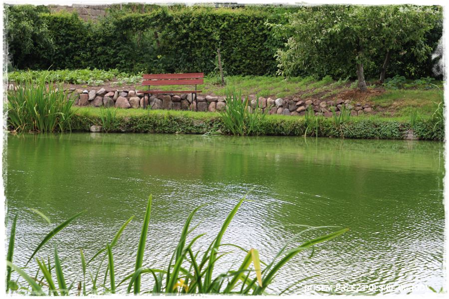 To część położona z boku budynku mieszkalnego, rozciągająca się aż na kilkadziesiąt metrów. Tu z kolei dominuje duża, otwarta przestrzeń, w której centralnym elementem jest mały staw, a także cała strefa wypoczynkowa z małą kuchnią polową. Całość jest oczywiście zagospodarowana w wiejskim klimacie, również z niezliczoną ilości dekoracji, zakątków i roślin.