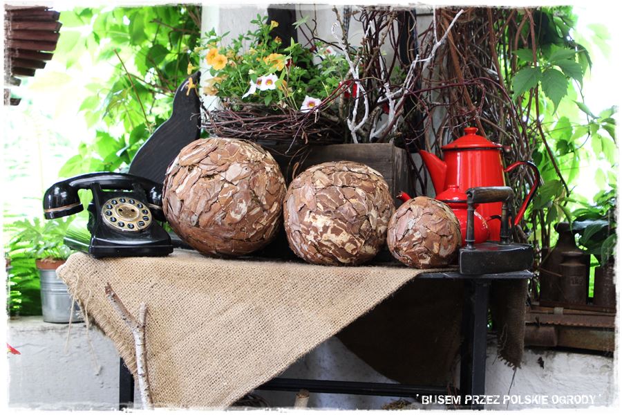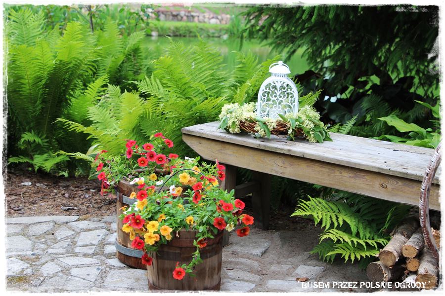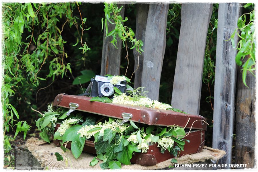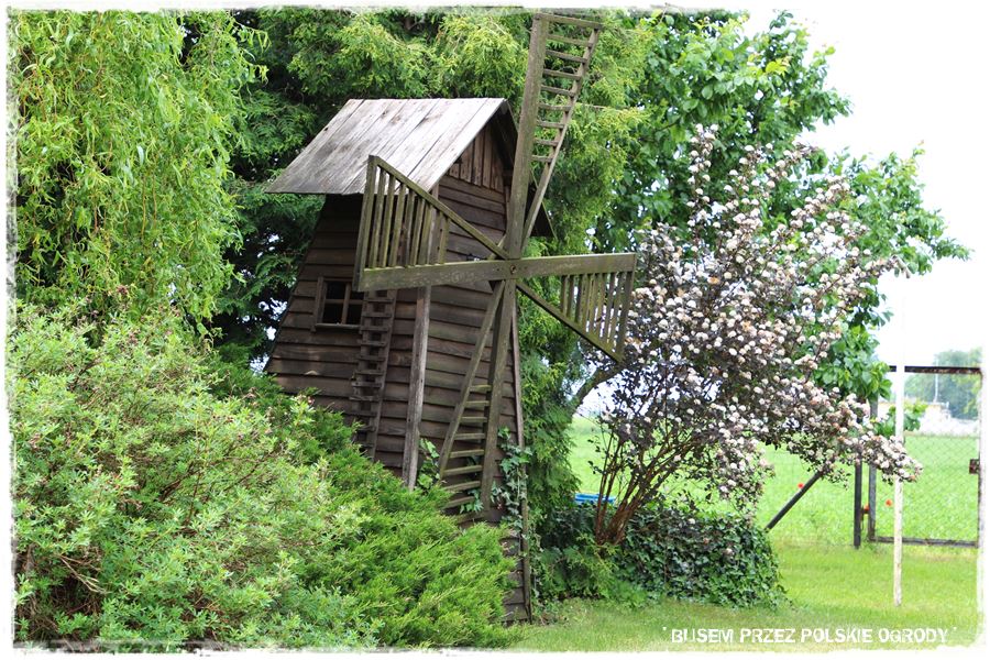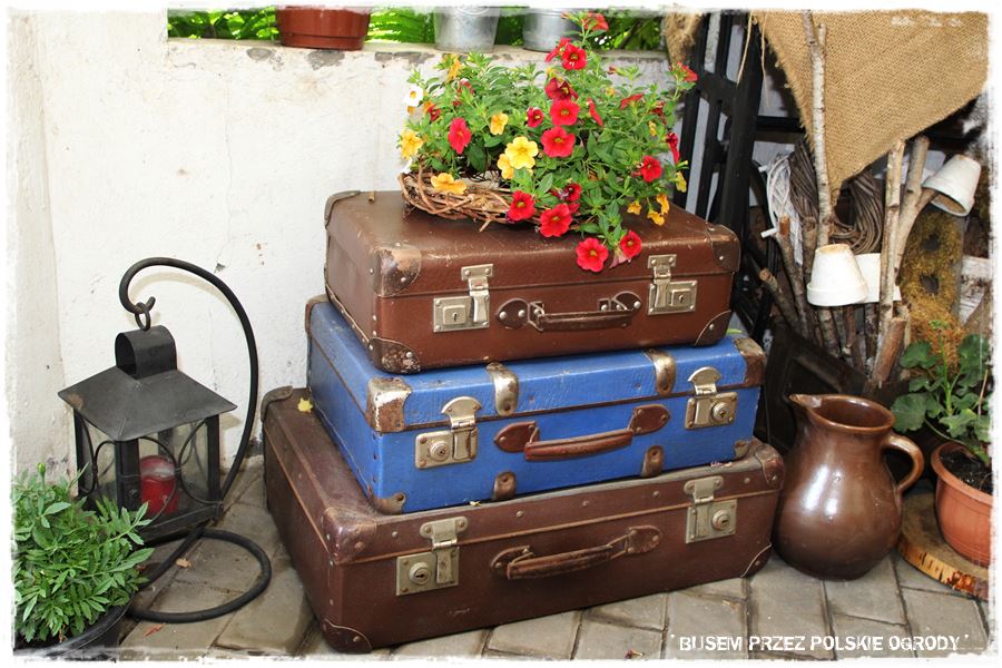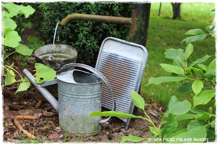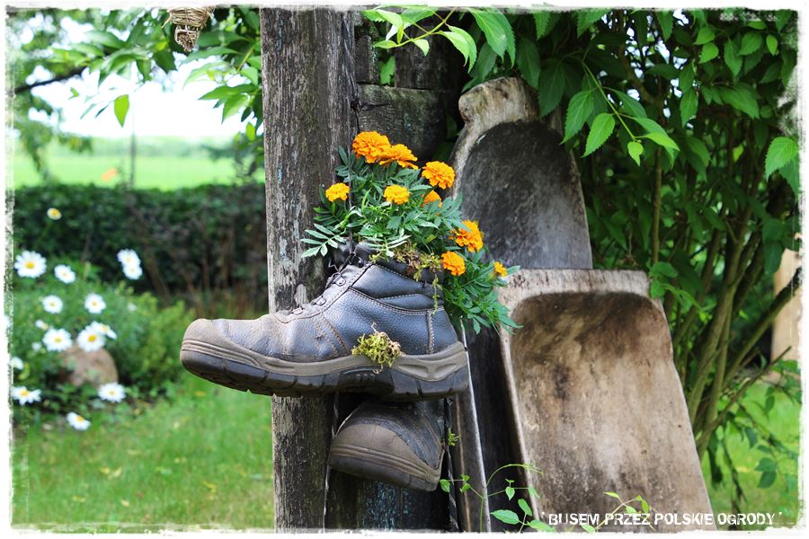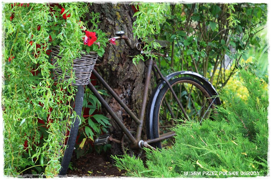 - po drugie ogród ten to pewnego rodzaju mały skansen, w którym ozdobami są nie tylko stare garnki, skrzynki, doniczki itd., ale również stare meble, czy nawet wóz, który dziś można oglądać chyba tylko w muzeum lub w jakiś archiwalnych filmach.
