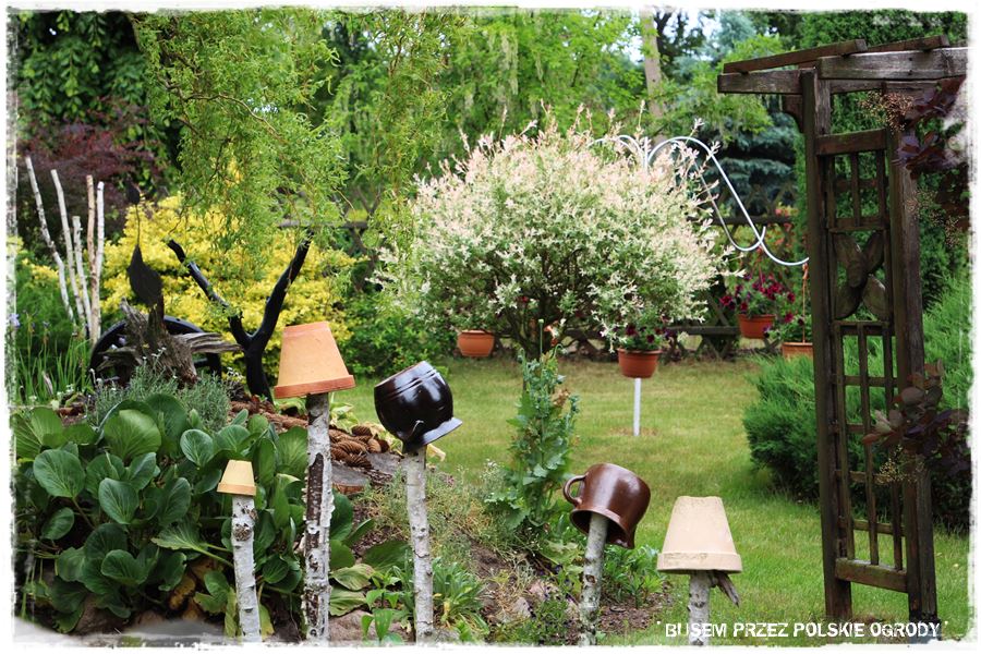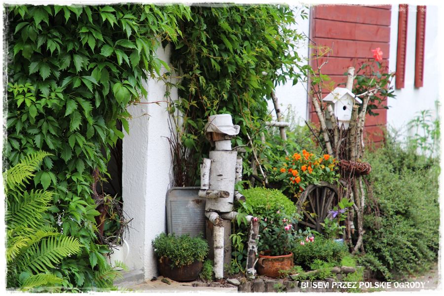 - po trzecie i bardzo ważne, ogród ten nie powstał z użyciem wyszukanych materiałów, drogich rozwiązań, profesjonalnych projektów. Wszystko co w nim zobaczysz, to praca własna Gospodarzy, własny pomysł i własne materiały. Własne to znaczy takie, które albo gdzieś na tej działce się “znalazły” albo pochodzą gdzieś z rozbiórek, albo kupione są gdzieś “na starociach”, albo po prostu wpadły gdzieś pod rękę.