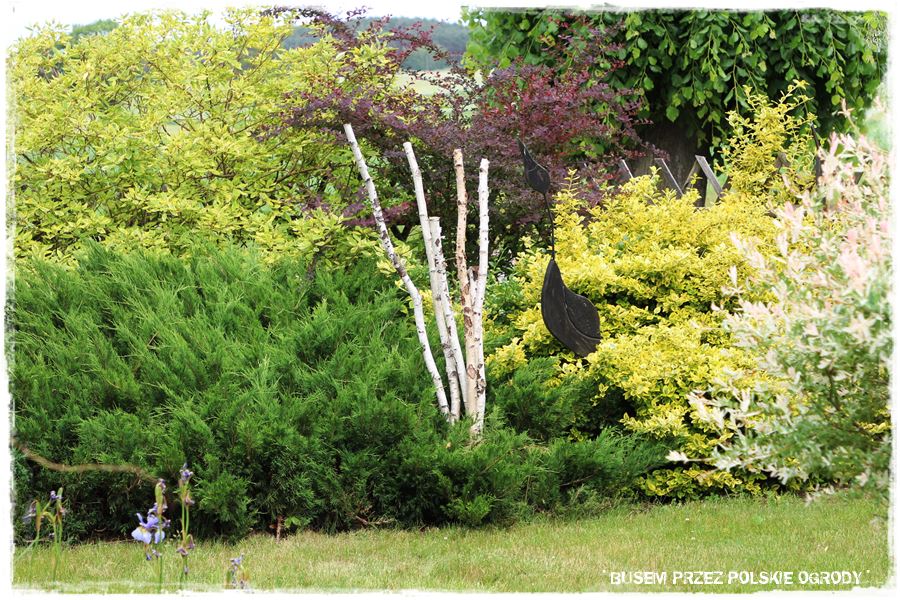 - przede wszystkim to informacja, że ogród Justyny i Romana to prawdziwy ogród wiejski. Ale taki naprawdę prawdziwy, w którym nic nie jest regularne, wszystko jest za to swobodne, rośnie “jak chce”, nie straszne są drobne chwasty, koniczyna w trawniku, nieregularne rabaty, nieprzycięte krzewy itd.