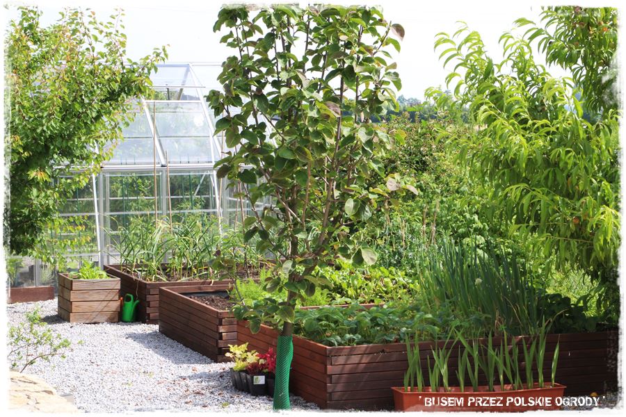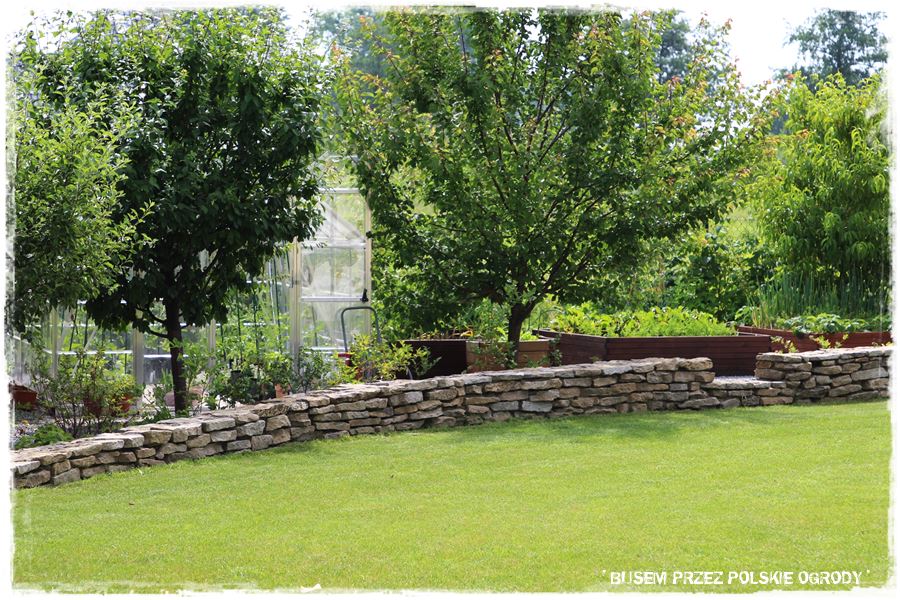 Podkreślenia wymaga fakt, że warzywnik, który z natury rzeczy nie jest w ogrodzie elementem ozdobnym, jest fajnie ukryty i gdyby nie lekko przebijające się podwyższone skrzynie, praktycznie wcale byłby niewidoczny. Podobnie jak plac zabaw, który również został sprytnie wkomponowany ‘za kamiennym murem’.