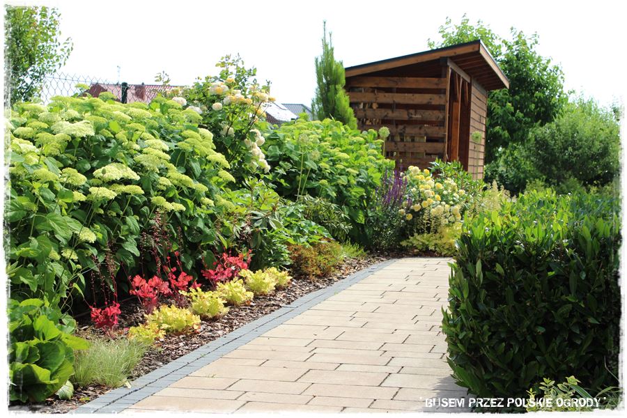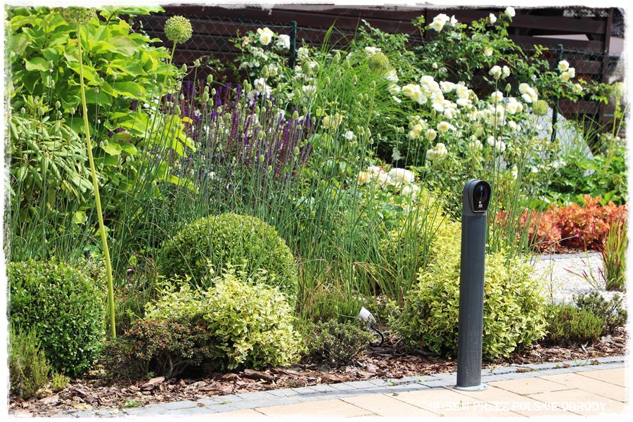 Wspominając o trawniku nie dodałem jeszcze, że aby go zobaczyć, trzeba wejść w głąb ogrodu, a najlepiej na jego tył. Tymczasem już od wejścia ogród wita swoim efektownym wyglądem, a konkretnie niewielkim przedogródkiem, zlokalizowanym pomiędzy frontową częścią działki i budynkiem.