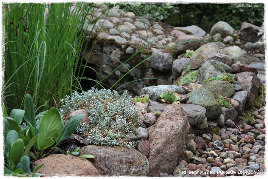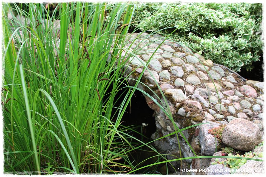 Przy okazji zwróć uwagę również na samo oczko wodne, czyli sporych rozmiarów, gęsto obsadzony zbiornik, którego boki, również wyłożone są kamieniem.
