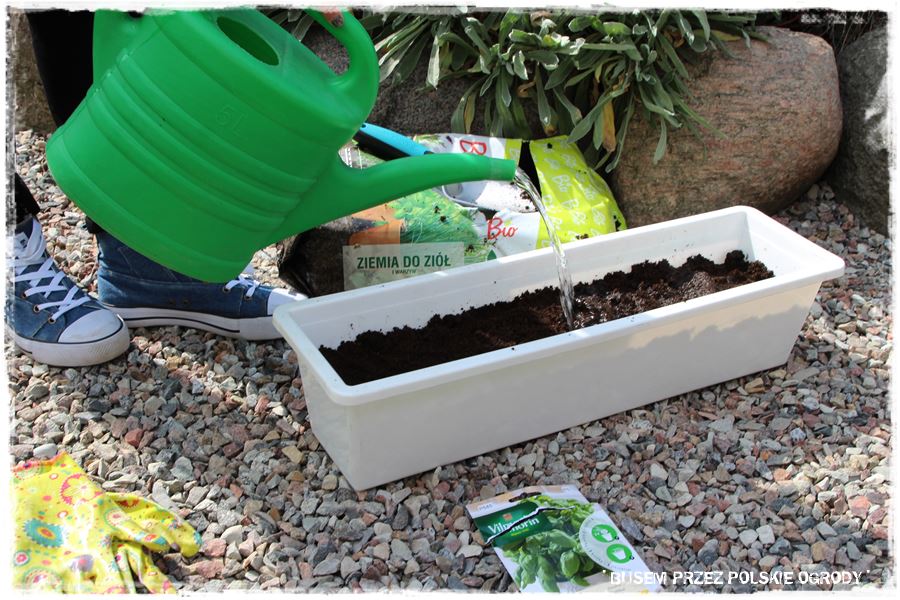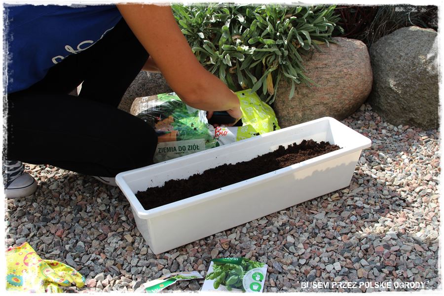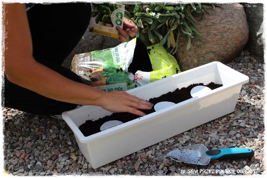 Na początek postawiliśmy na prace typowo ogrodnicze, a konkretnie letnie sianie. A do wysiania nasiona bazylii na tzw. krążkach, które umieściliśmy w specjalnie dedykowanym podłożu do ziół.
