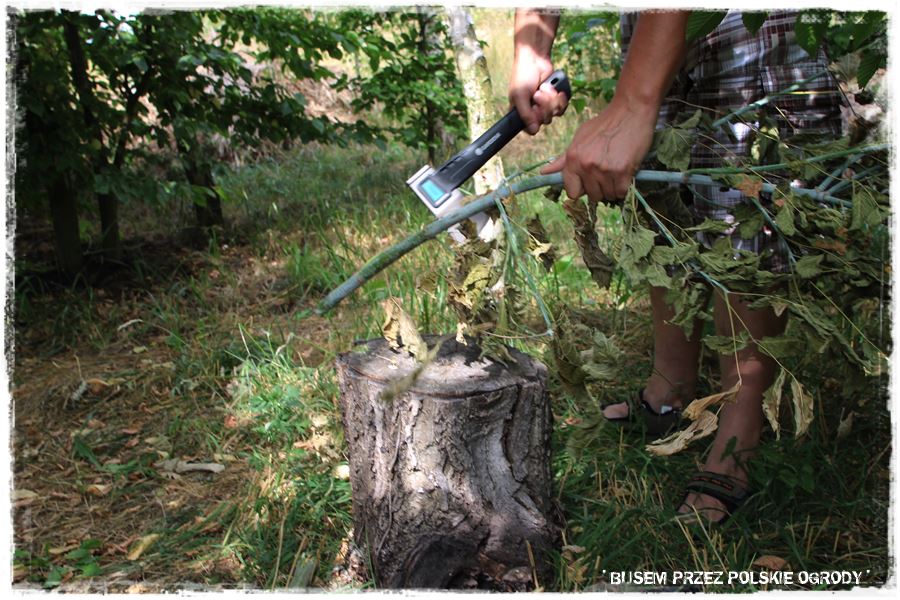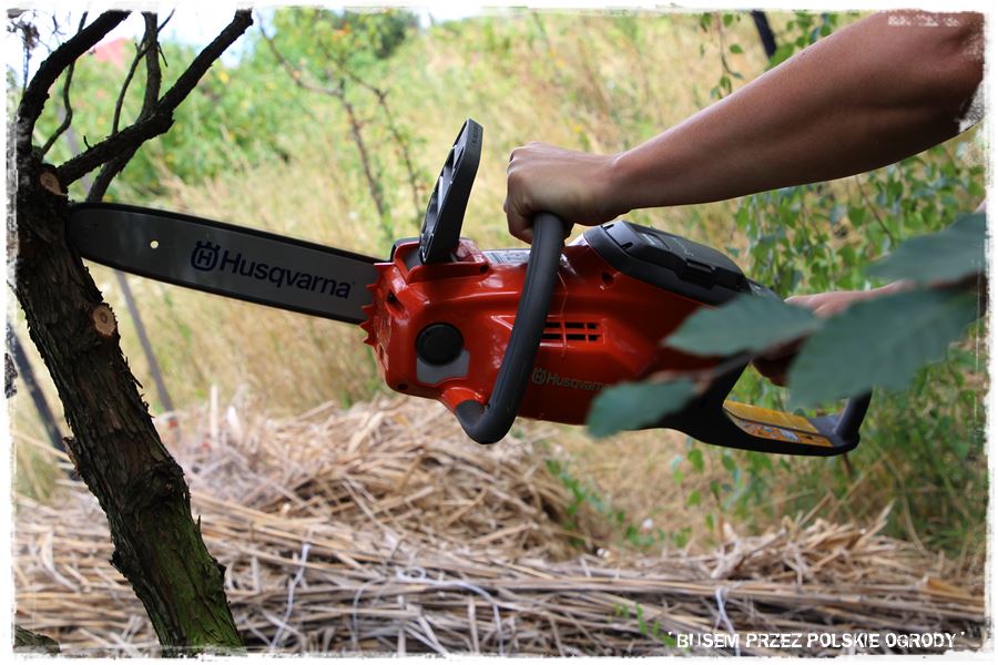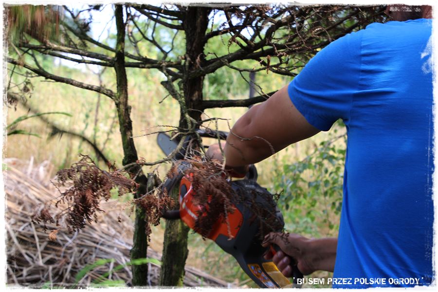 Po pracach związanych z sadzeniem, przyszedł czas na kilka innych spraw gospodarczych oraz pielęgnacyjnych. A zatem w ruch poszły drobne narzędzia i maszyny, co mnie osobiście cieszy najbardziej. Na początek nie mogliśmy sobie odmówić kilku prac sprzętem mechanicznym, a konkretnie akumulatorową piłą, którą zrobiliśmy mały porządek w tylnej, nie zagospodarowanej jeszcze części działki.