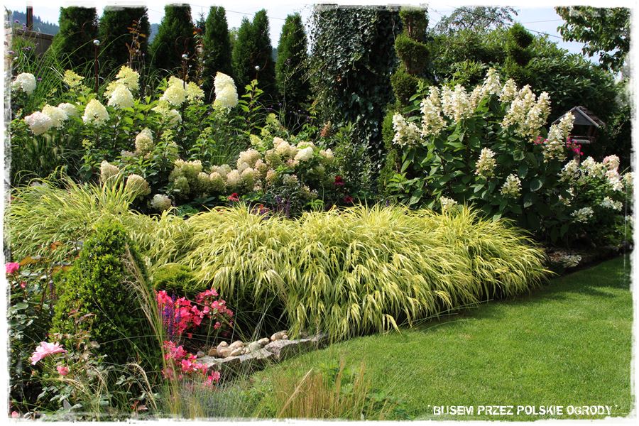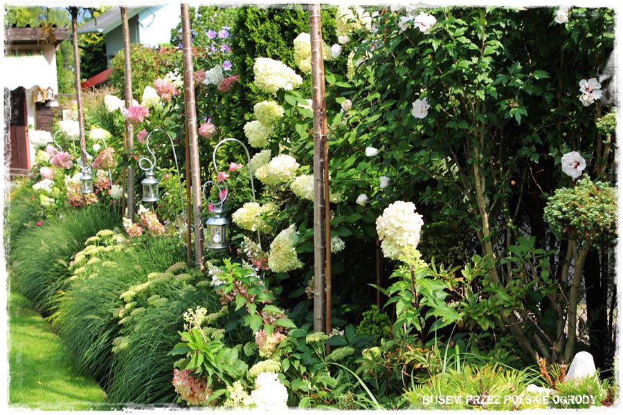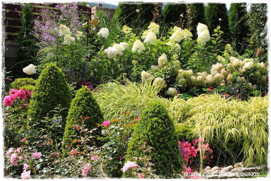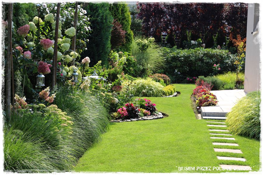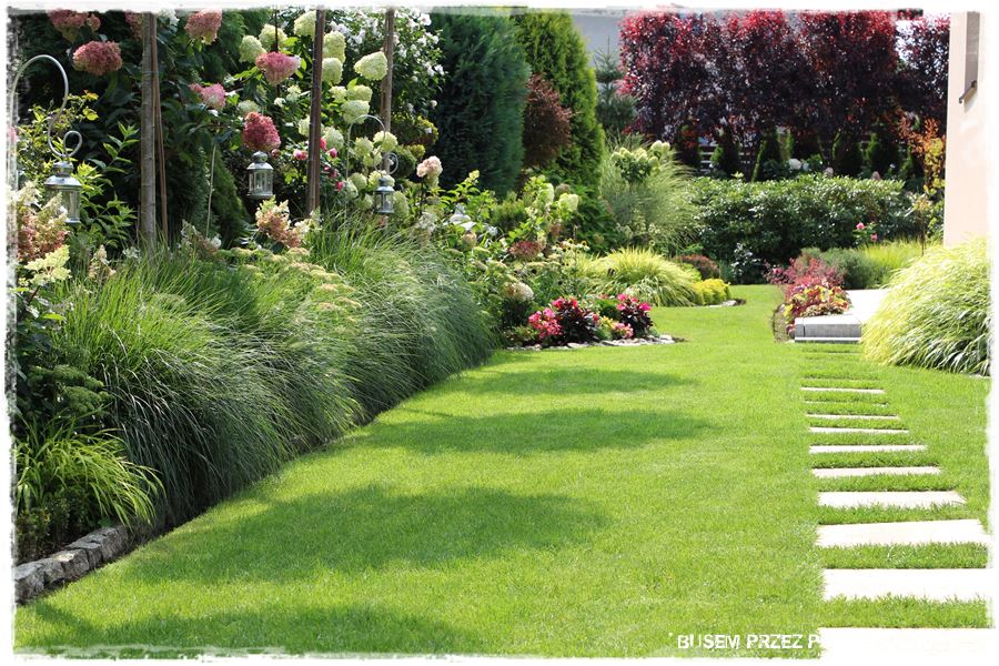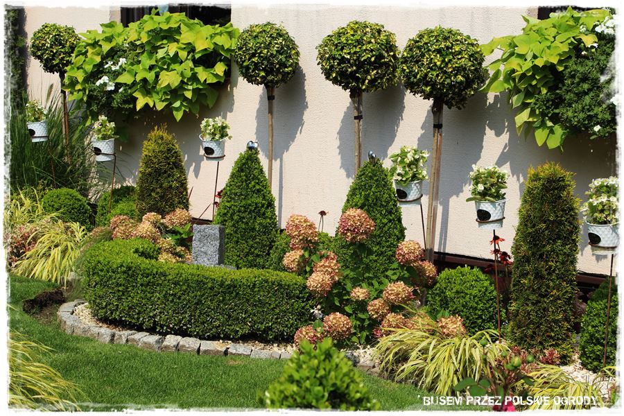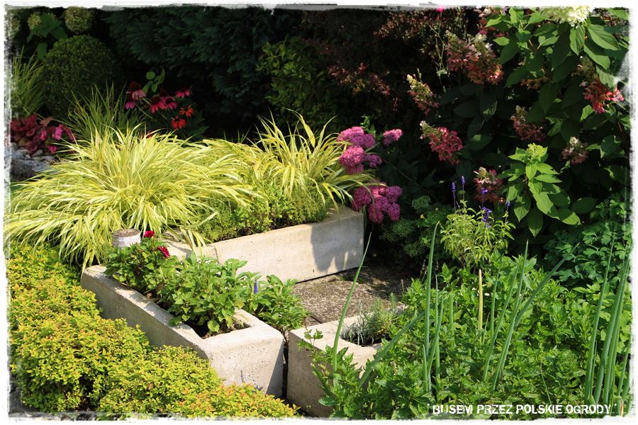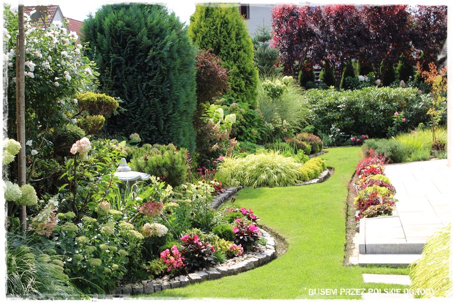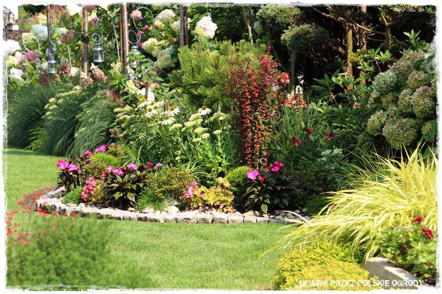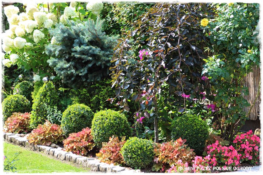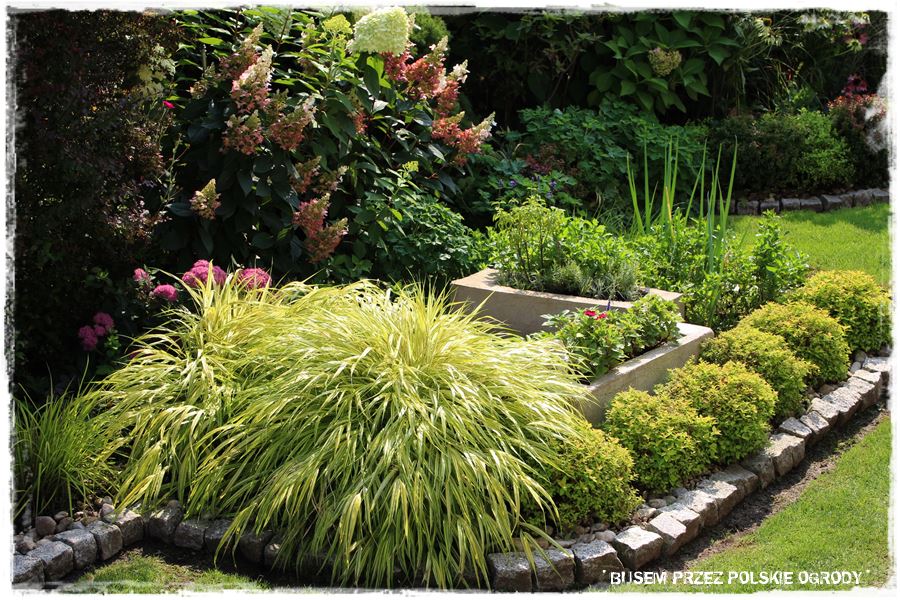 Pierwszym najbardziej widocznym elementem po wejściu do ogrodu, jest znajdujący się od frontu przedogródek. Pięknie skomponowany i zestopniowany.