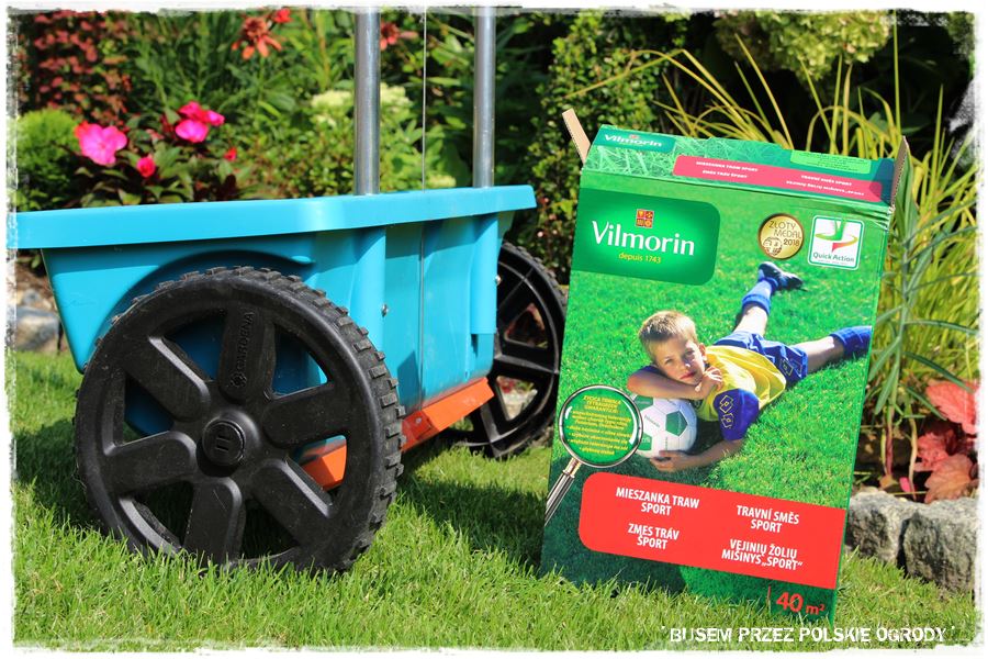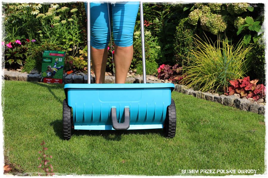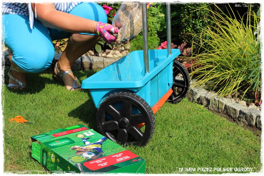 Na początek postawiliśmy na prace typowo ogrodnicze, a konkretnie – sianie. A do wysiania mieliśmy mieszankę traw sportowych, którą postanowiliśmy wzmocnić piękny trawnik Gosi.