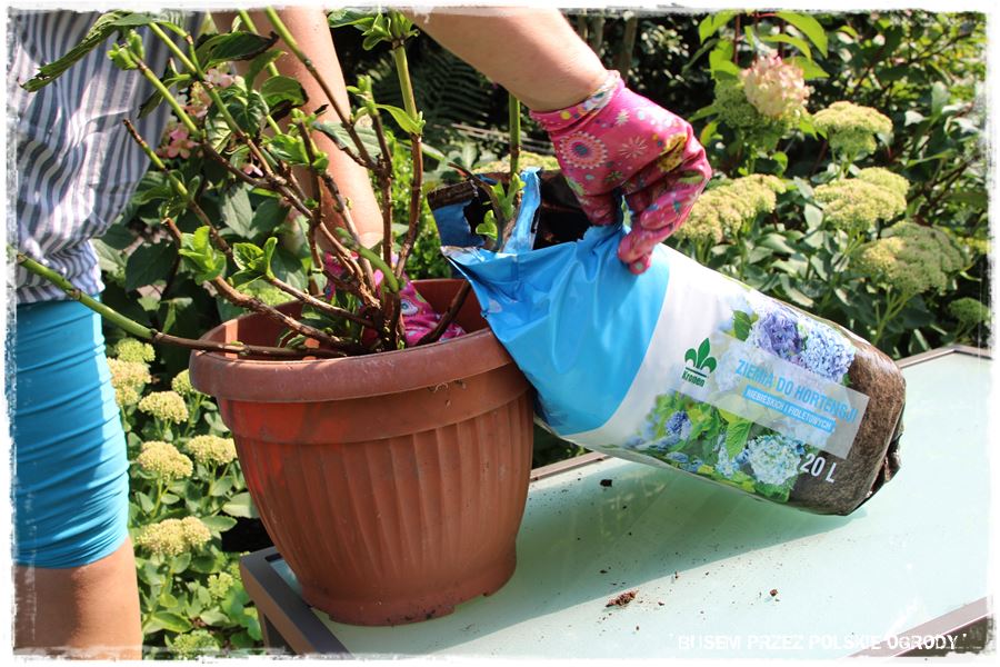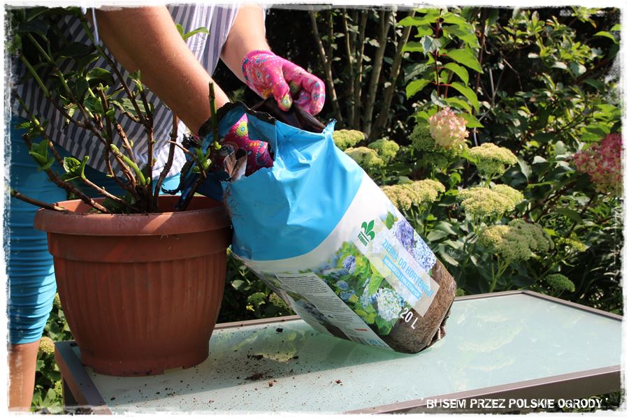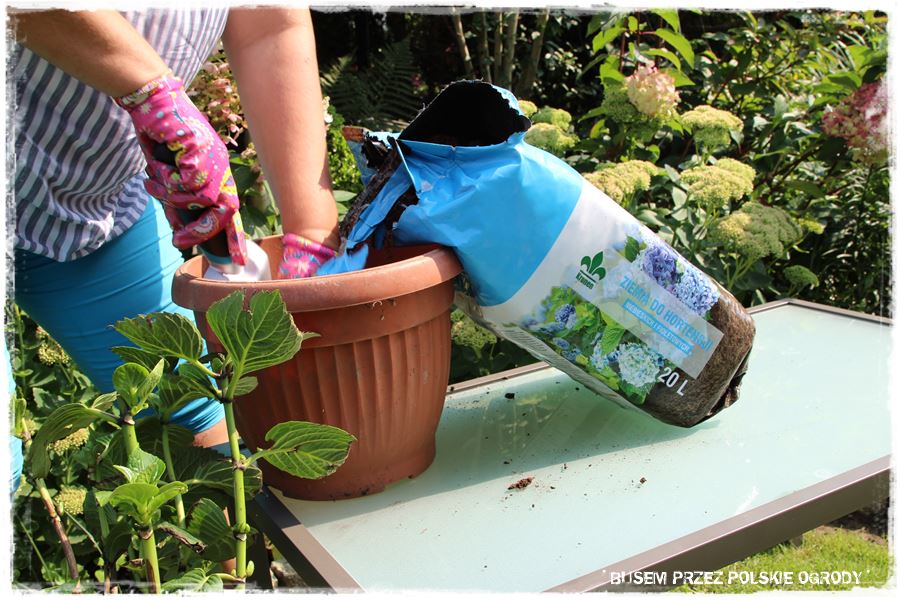 Następnie postanowiliśmy posadzić hortensję, która powędrowała do specjalnie dedykowanego podłoża.