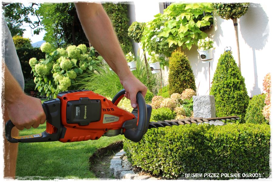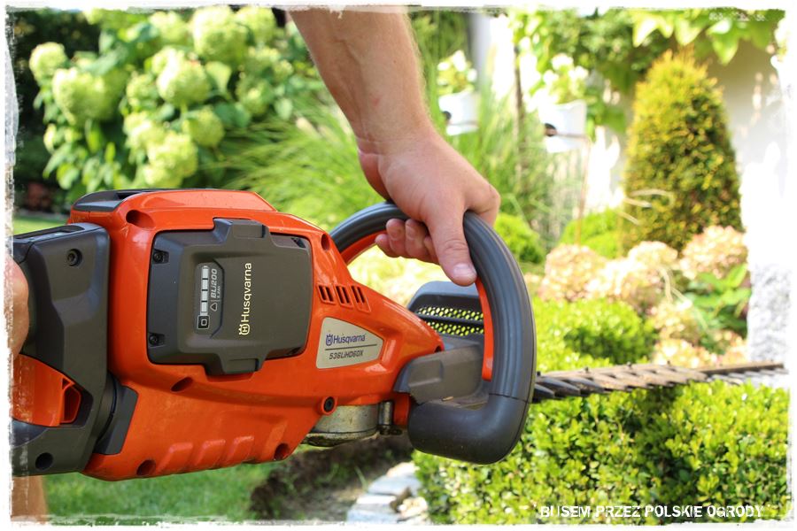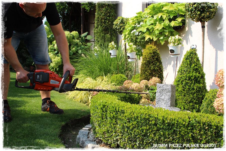 Później przycinka bukszpanowej obwódki, w czym wspomogły mnie akumulatorowe nożyce.