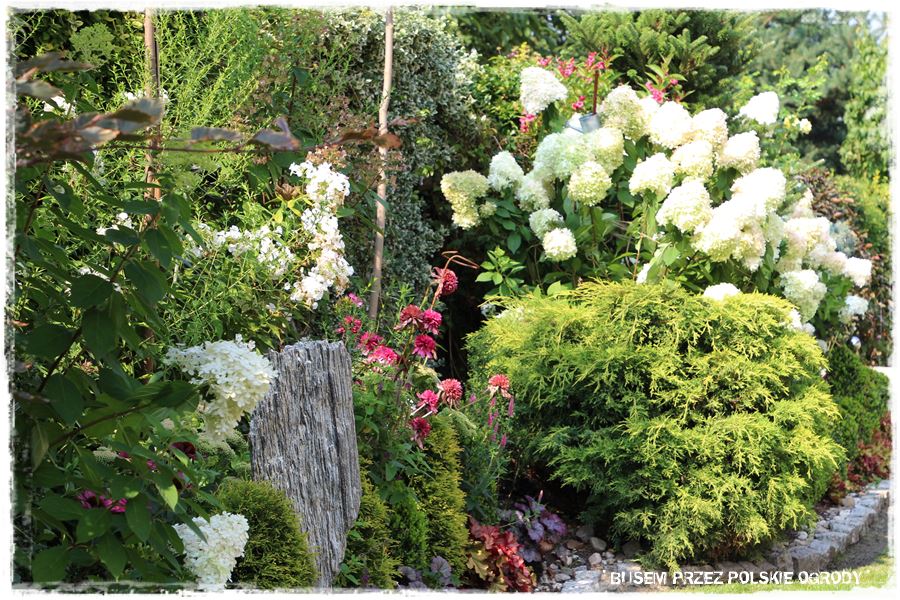 Poza tym, pokazany ogród to kolejny przykład na to, że pomysłowość ludzka nie zna granic. Że możliwe jest tworzenie efektownych ogrodów, które wyglądają ciekawie przez cały rok, a szczególnie teraz, ozdobione kwitnącymi hortensjami. Ciekawe jest również to, że ogród ten ma podwójne oblicze – z jednej strony uporządkowany i regularny, z drugiej prawie naturalistyczny.