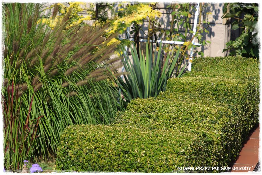 I po trzecie to świadomość, że ogród to miejsce, w którym warto eksperymentować i przełamywać stereotypy. Łączyć rośliny formowane będące raczej cechą ogrodów nowoczesnych, z pięknie kwitnącymi i swobodnymi kwiatami, będącymi z kolei domeną ogrodów naturalnych.