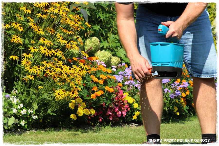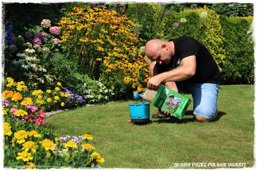Na początek postawiliśmy na prace typowo ogrodnicze, a konkretnie – sianie. A do wysiania mieliśmy mieszankę traw uniwersalnych, którą postanowiliśmy wzmocnić piękny trawnik Marysi.