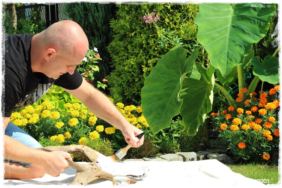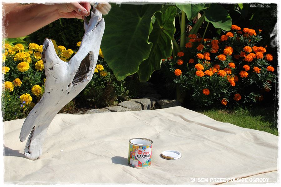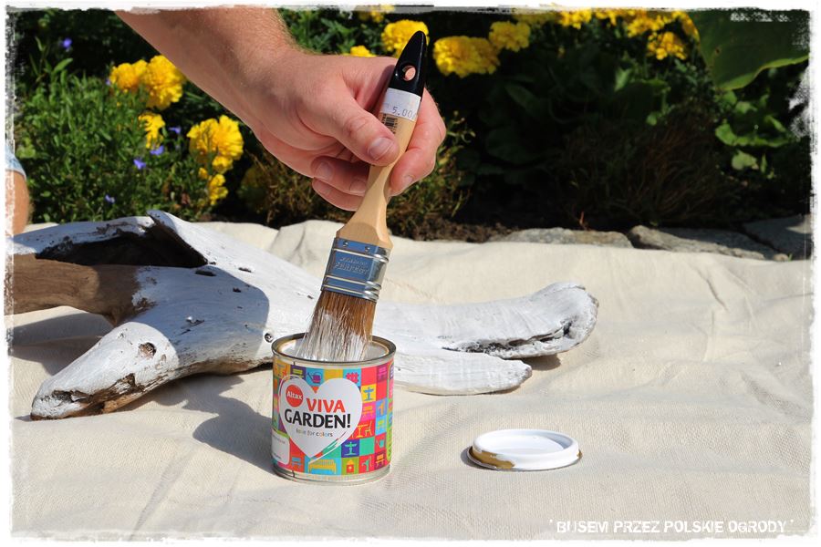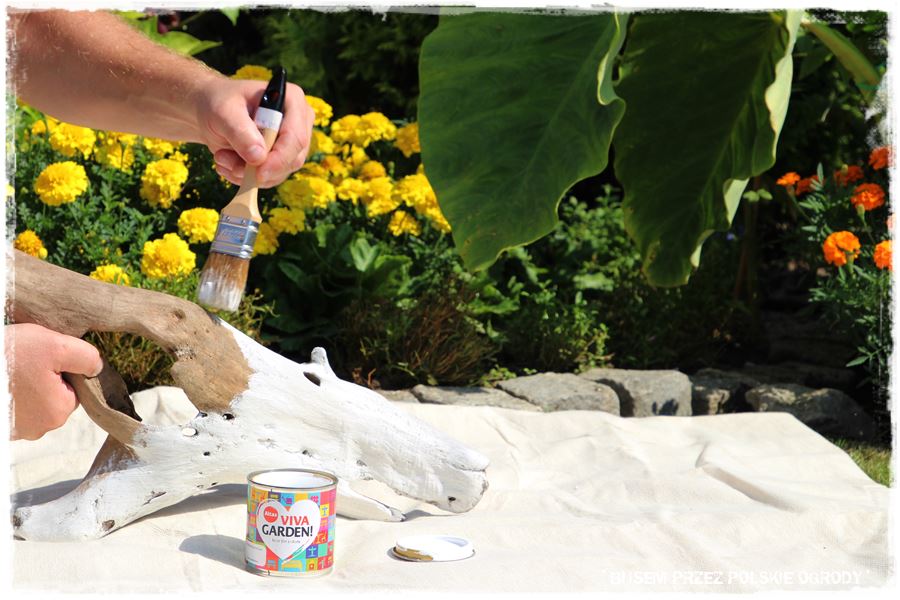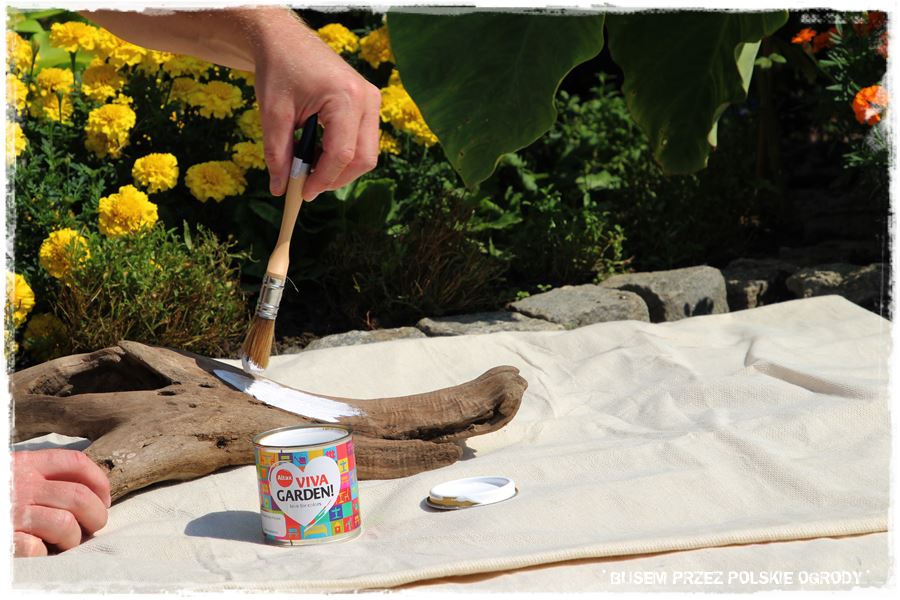 Podczas prac nie mogło zabraknąć także malowania. Wybraliśmy więc puszkę z farbą w kolorze białym, który powędrował na jeden z przyoczkowych korzeni.