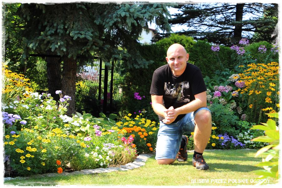 Siedemnasty odwiedzony ogród, jak już wspomniałem, położony jest w województwie małopolskim. W niewielkiej miejscowości w pobliżu Wieliczki. Działka nie jest duża, ma powierzchnię kilu arów. W centralnej części stoi budynek mieszkalny, który dosłownie otoczony jest ogrodem. Natomiast jego główna odsłona jest od frontu, a zatem bezpośrednio z osiedlowej drogi zachwyca swoim wyglądem.