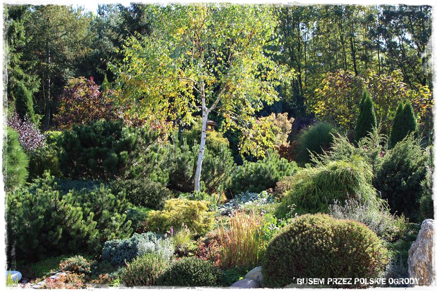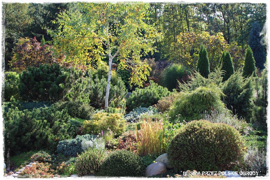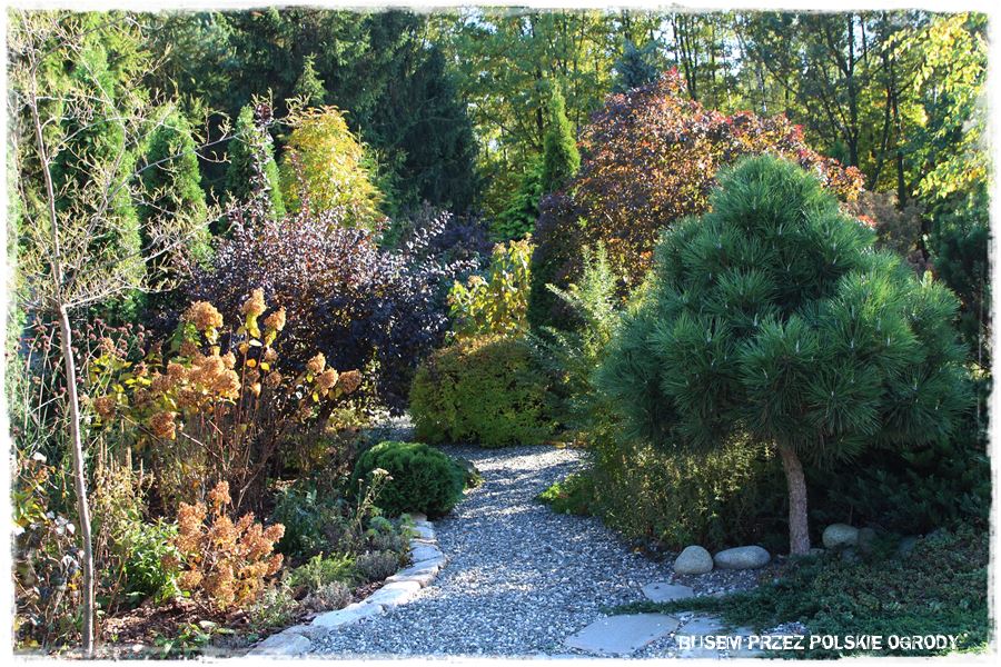 Ogród, który za moment dokładnie zobaczysz, śmiało mogę nazwać zimozielonym, co bez wahania również mogę określić jego największym sukcesem. Stwierdzam to bez wahania, bo widziałem go zimą, w styczniu 2018 roku. Podczas gdy inne ogrody, w sezonie nawet bardzo atrakcyjne, przez kilka miesięcy w roku nie zachwycają, ten zachwyca i cieszy przez cały rok. Za ten sukces odpowiada przede wszystkim odpowiedni dobór roślin, wśród których dominują gatunki iglaste, poza tym ich odpowiednie rozmieszczenie, a także niebywała dyscyplina w tym zakresie…. Czyli nie uleganie pokusom, aby sadzić ‘wszystko i wszędzie’ i w każdym możliwym kolorze. Oczywiście poza iglastymi są też inne, niemniej odpowiednio wkomponowane i rozmieszczone, aby właśnie w ich okresie małej atrakcyjności (bezlistnym), nie tworzyły pustych, mało atrakcyjnych stref ogrodzie. Jednak po kolei.
