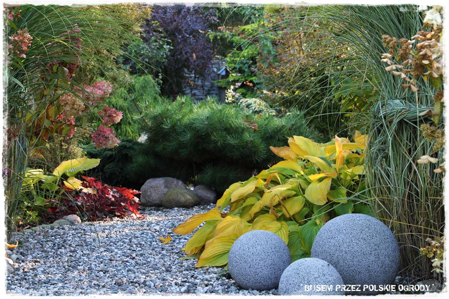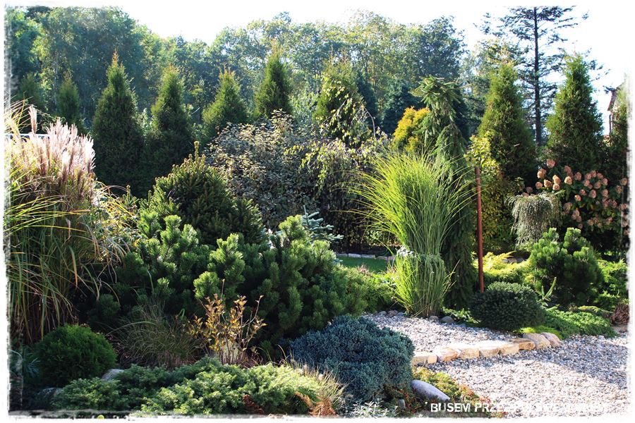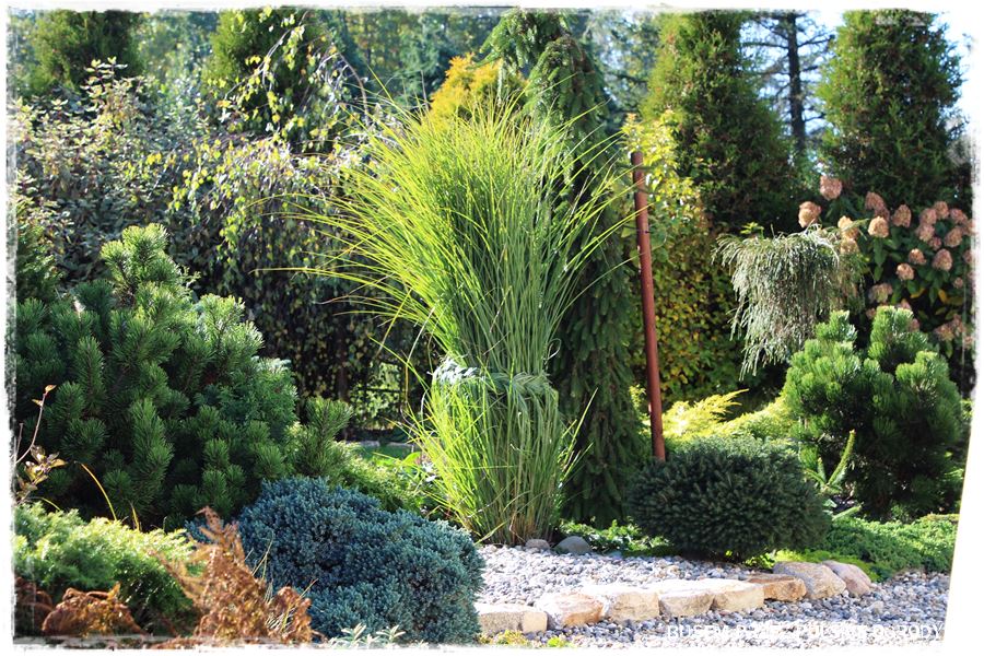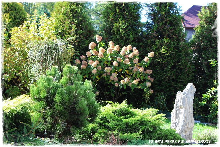 Drugą grupą roślin, którą chciałbym podkreślić są hortensje. Idealnie uzupełniają i kontrastują z iglakami oraz trawami.