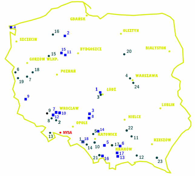 Kolor czerwony to tradycyjnie miejsce skąd wyruszyłem, a ten niebieski kwadrat z numerem 18, to właśnie lokalizacja osiemnastego ogrodu, położonego w województwie śląskim. Do pokonania miałem zatem niewielką odległość, około 140 kilometrów w jedną stronę. Na mapie widać również ciemnozielone kropki z numerami od 1 do 24, które obrazują wszystkie ogrody odwiedzone w sezonie 1 – 2018. Myślę więc, że to ciekawe uzupełnienie. Jak również widzisz, obecny numer 18 pokrywa się z numerem 1 sezonu 2018.