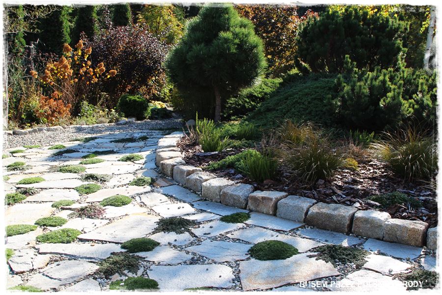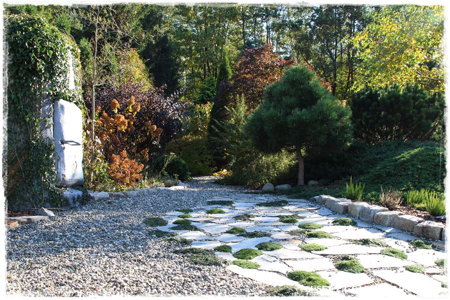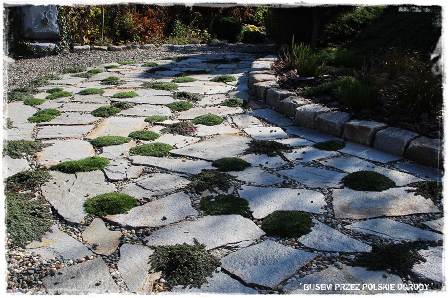 Jednak szczególnie zachwyca łupkowy chodnik, ładnie przeplatany karmnikiem ościstym.