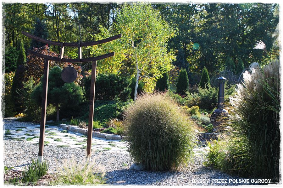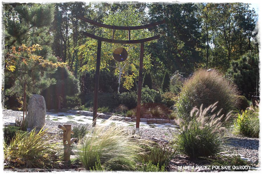 Oryginalnym elementem ogrodu jest kącik japoński, w którym główną rolę odgrywa duża, stylowa brama.