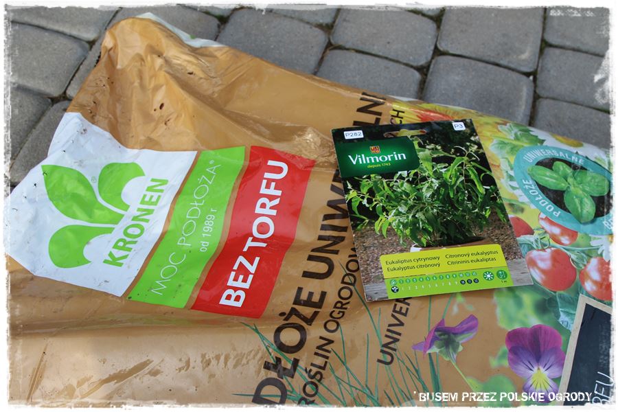 Na początek postawiliśmy na prace typowo ogrodnicze, a konkretnie – sianie. A do wysiania mieliśmy nasiona eukaliptusa cytrynowego, które jak przeczytaliśmy na opakowaniu – w donicy można siać cały rok. Swoją drogą to ciekawe wydłużenie sezonu do każdego ogrodnika.