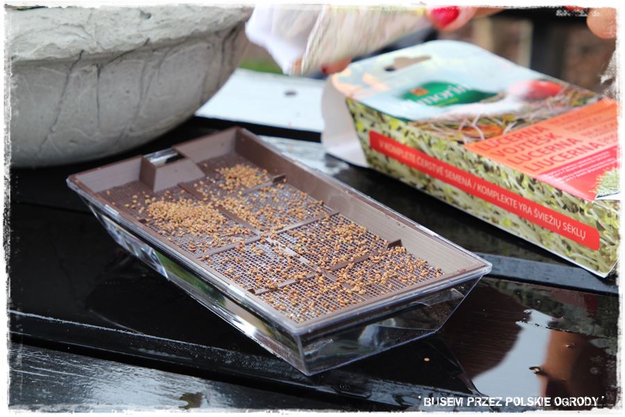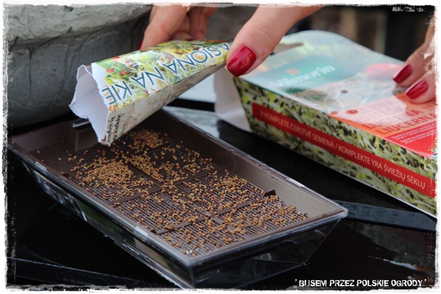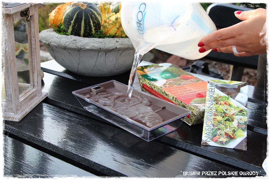 Następnie, w specjalnym mini kiełkowniku do domowej uprawy, wysialiśmy kiełki, co dla Katarzyny i jej Córki będzie dobrym uzupełnieniem jesiennej diety.