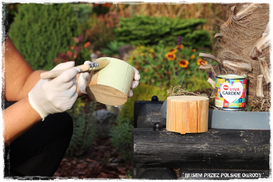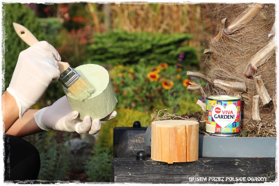 Do tych samych stroików wymalowaliśmy również drewniane „klocki” na podstawy, które dostały delikatny, zielony kolor.