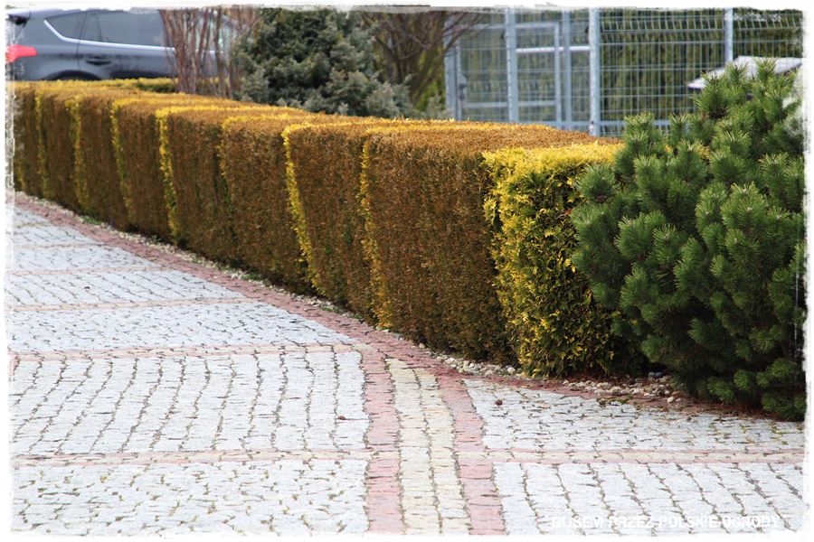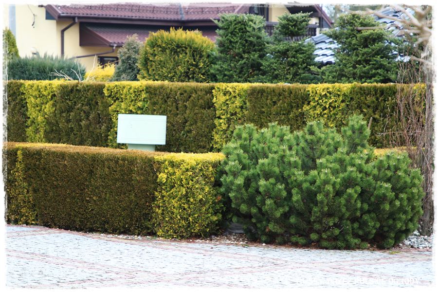 Pierwszym z nich są ciekawie nasadzane i perfekcyjnie formowane wewnętrzne żywopłoty, które towarzyszą idąc z frontowej do tylnej części ogrodu. Na uwagę zasługuje zarówno forma,